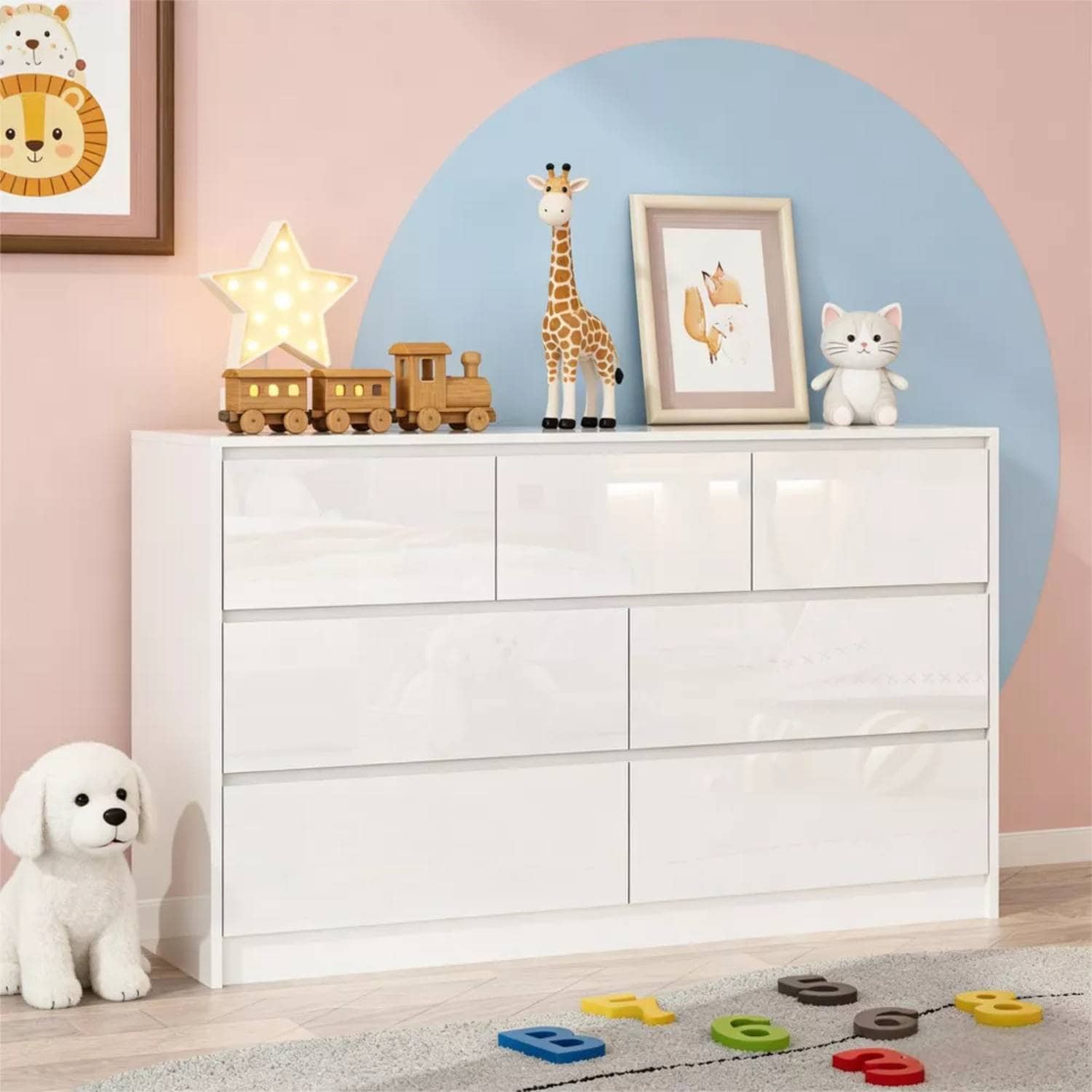 55" Full High Gloss Dresser with 7 Drawe... |