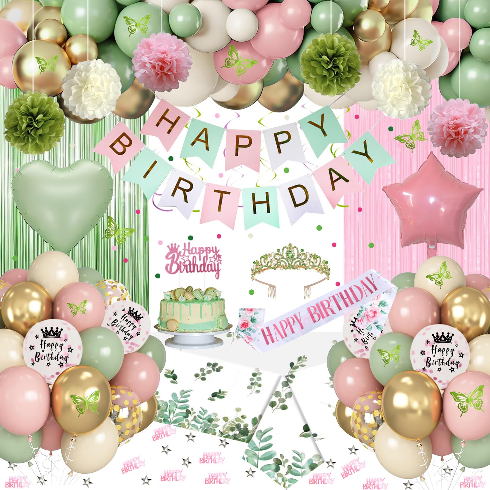 Pink and Sage Green Birthday Party Decor... |