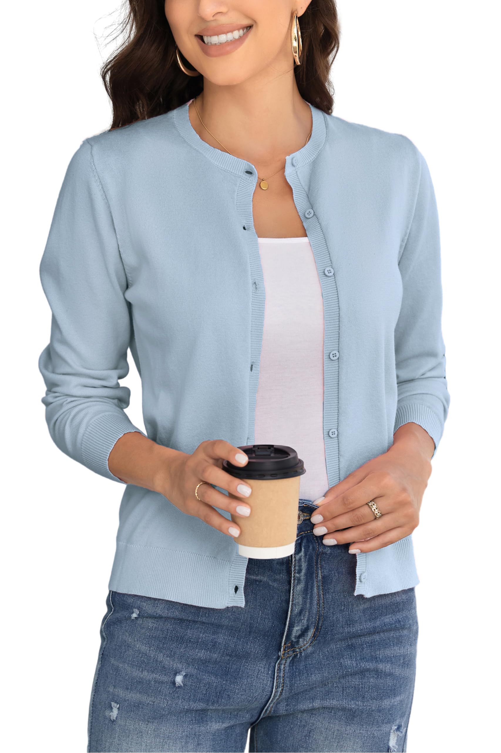 BERESIA Women's Crew Neck Button Down Lo... |