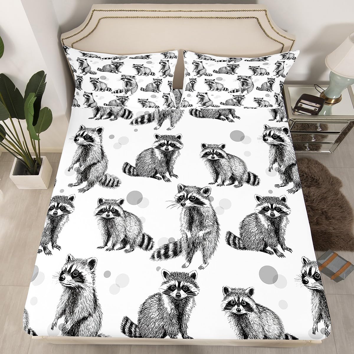 Raccoon Fitted Sheet Black and White Bed... |