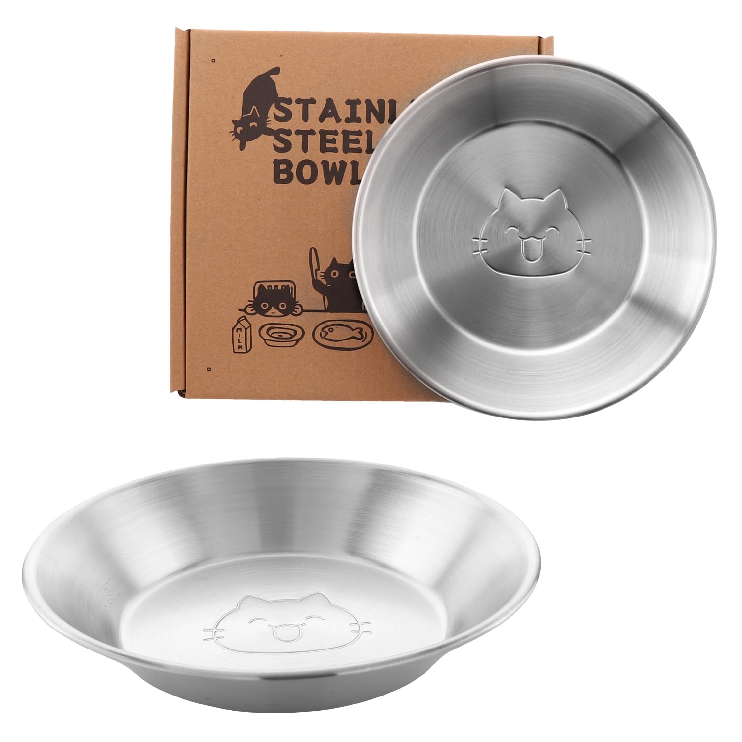 Stainless Steel Cat Bowls, 6.8" Wide Whi... |