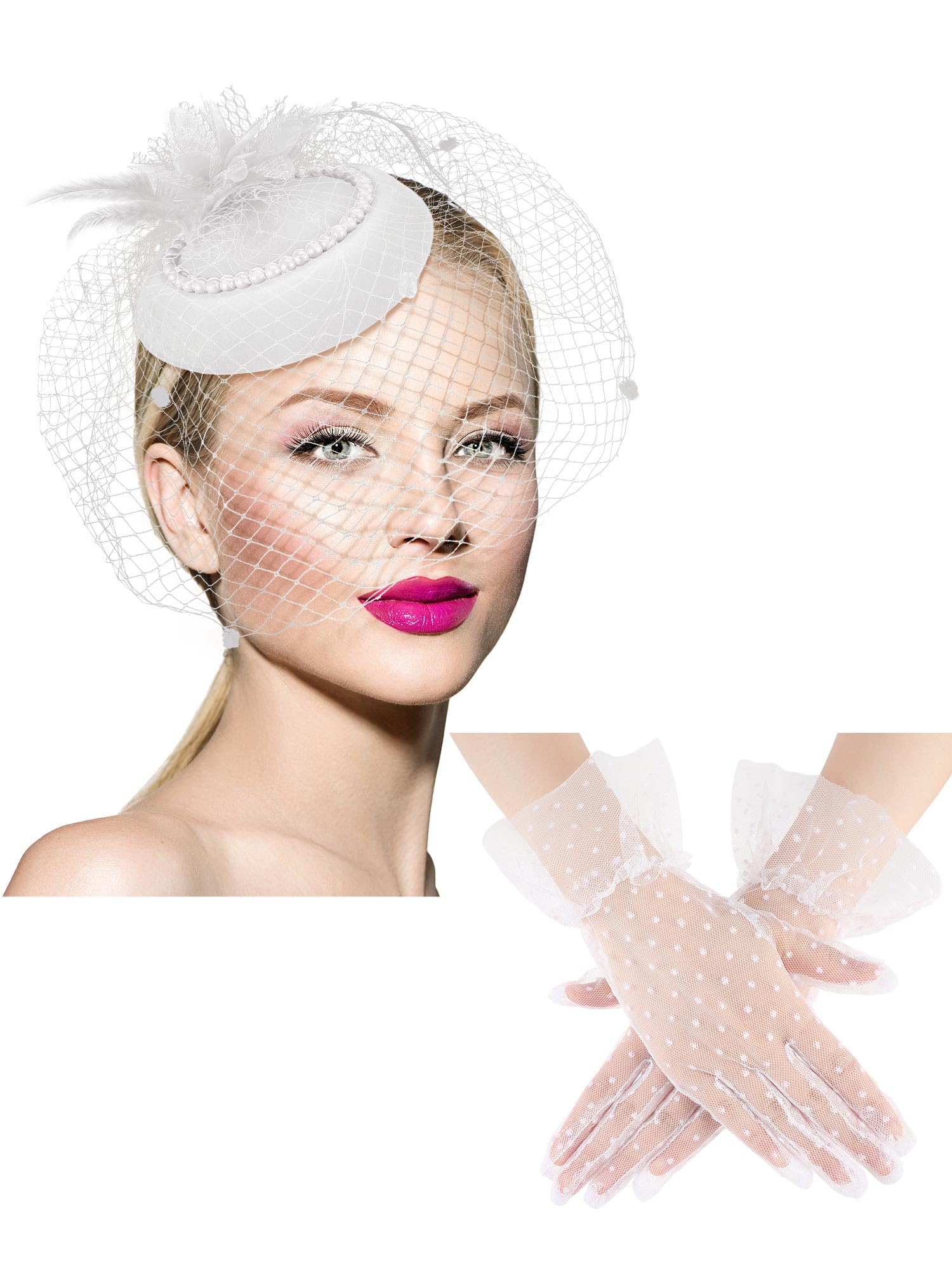 Geyoga 20s 50s Tea Party Hat Clip and Gl... |