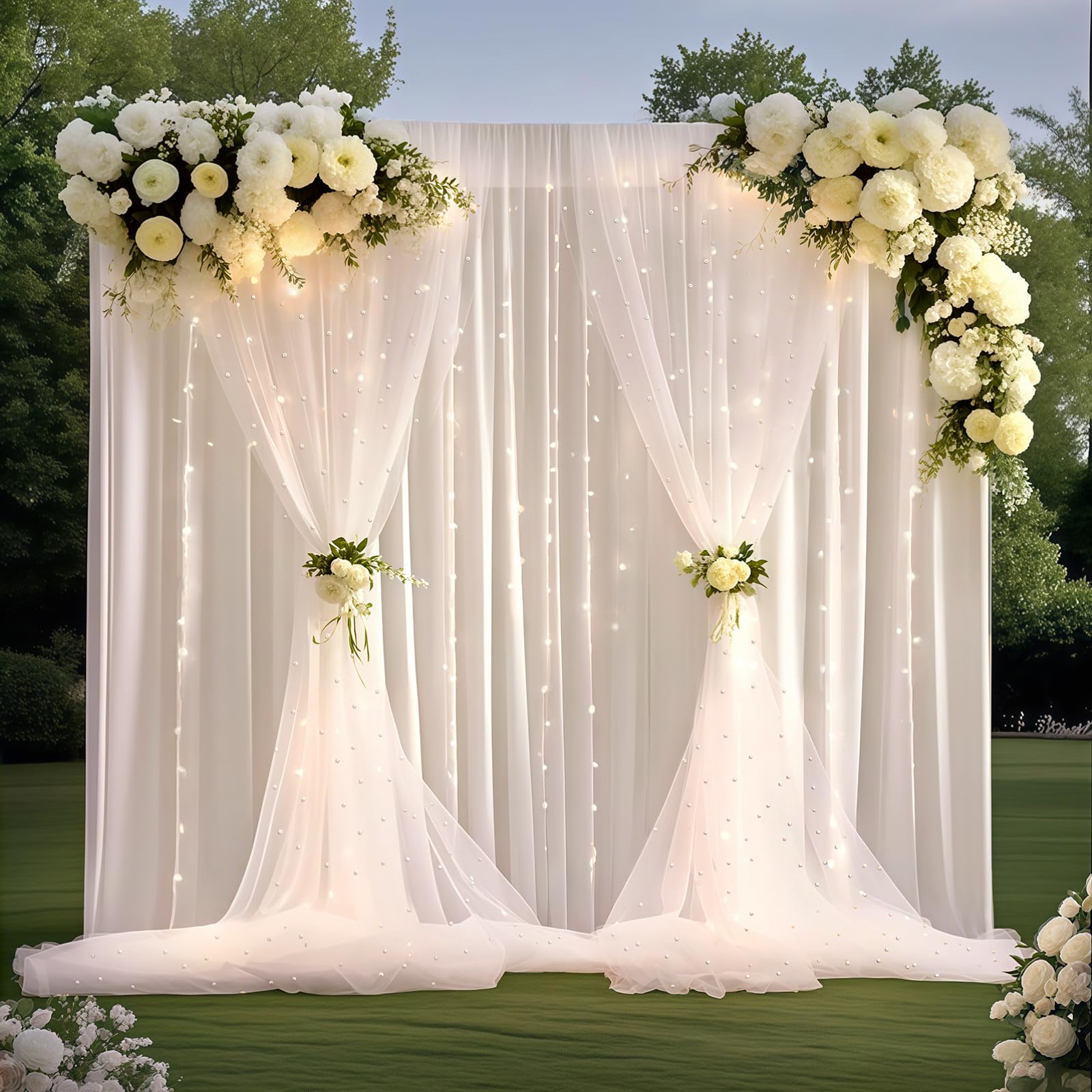 GUANSEN 10 * 8FT White Pearl Tulle Doubl... |