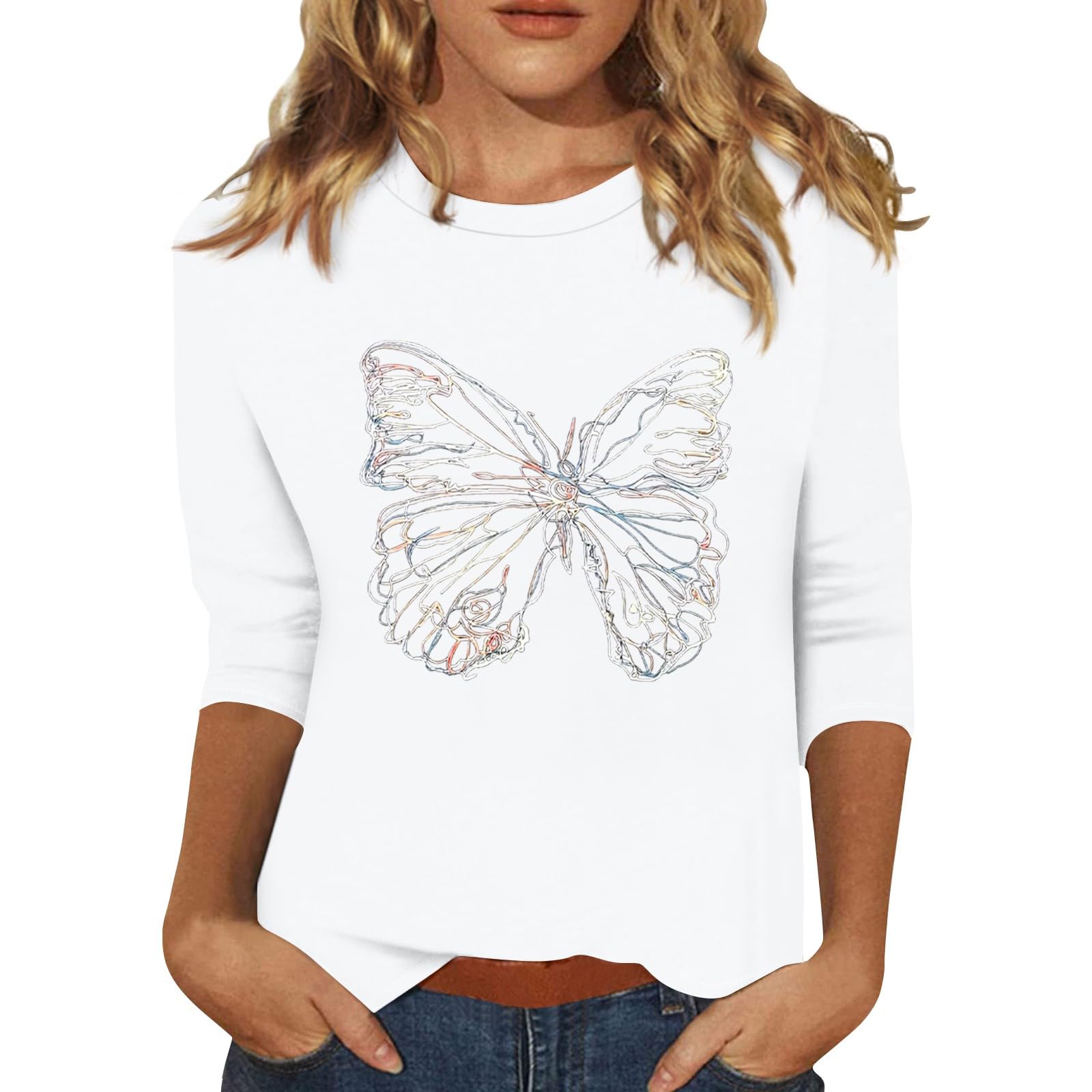 Womens Tops 3/4 Length Sleeves Travel Ov... |