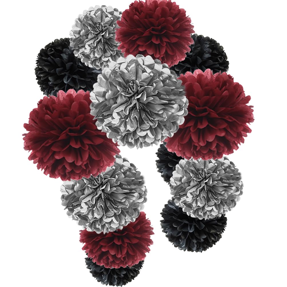 Burgundy Silver Black Tissue Paper Pom P... |