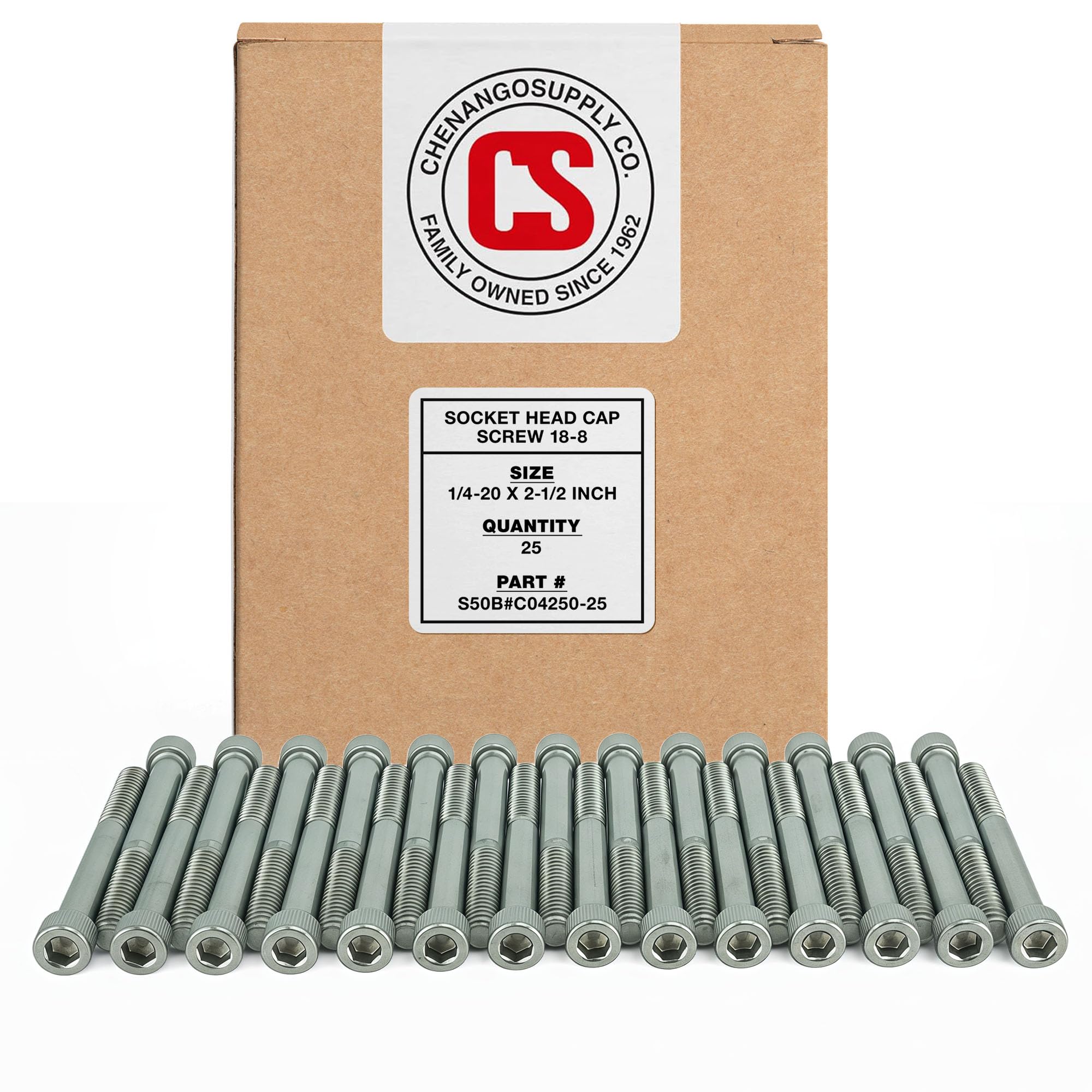 18-8 STAINLESS STEEL BUILD – Corrosion-resistant stainless steel supports long-term durability in fabrication, equipment maintenance, and mechanical assembly where reliability is essential. PRECISE 1/4-20 x 1-3/4 SPECS – Coarse thread improves threading reliability in pre-tapped holes and supports use in brittle materials; screw length measured under the head for accurate installation planning. HEX SOCKET DRIVE FOR CONTROL – 3/16 hex drive with .375" diameter and .25" height head provides strong tool engagement—addressing customer concerns about stripping and supporting high-torque fastening. FULLY THREADED SHANK DESIGN – Full thread engagement increases holding strength in assemblies using nuts or tapped holes, aligning with positive feedback about correct sizing and dependable performance. 25-PIECE INDUSTRIAL PACK – Packaged for machine shops, MRO teams, and fabrication crews who require consistent hardware quantities for repeatable fastening jobs and component assembly. Industrial-grade 1/4-20 stainless steel socket head cap screws engineered for mechanical assembly, equipment repair, fabrication work, and maintenance operations requiring reliable fastening performance.