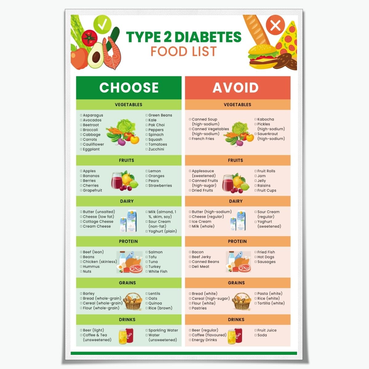 Type 2 Diabetes Food List Chart Poster D... |