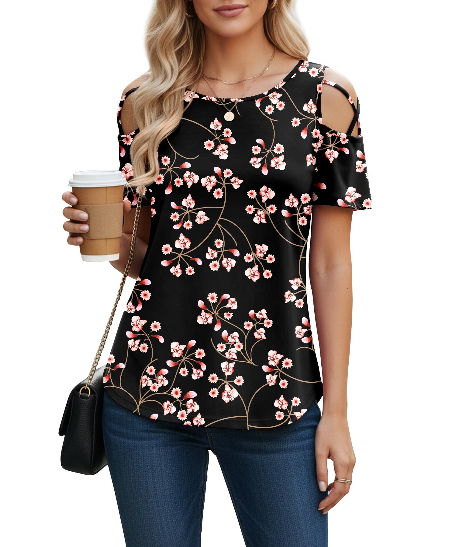 NILOUFO Cold Shoulder Tops for Women Sho... |
