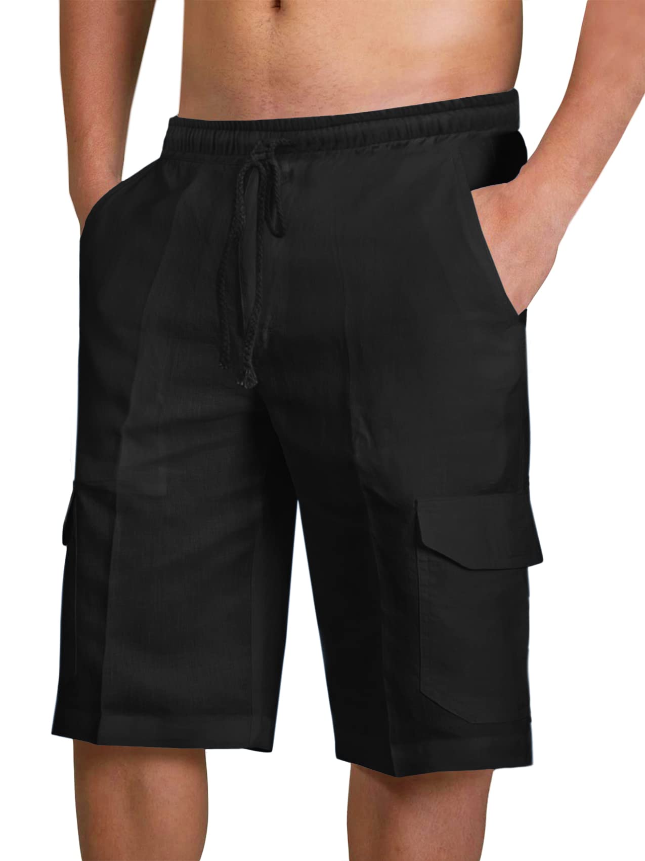PASLTER Mens Cotton Linen Shorts Casual ... |