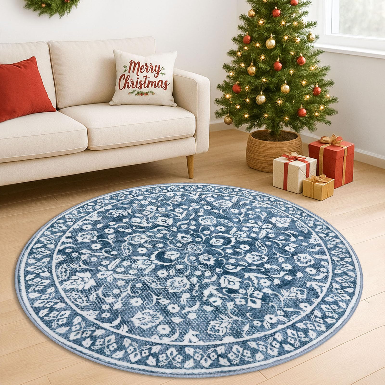 SILOLOOM Blue and White Round Rug 6 Ft R... |
