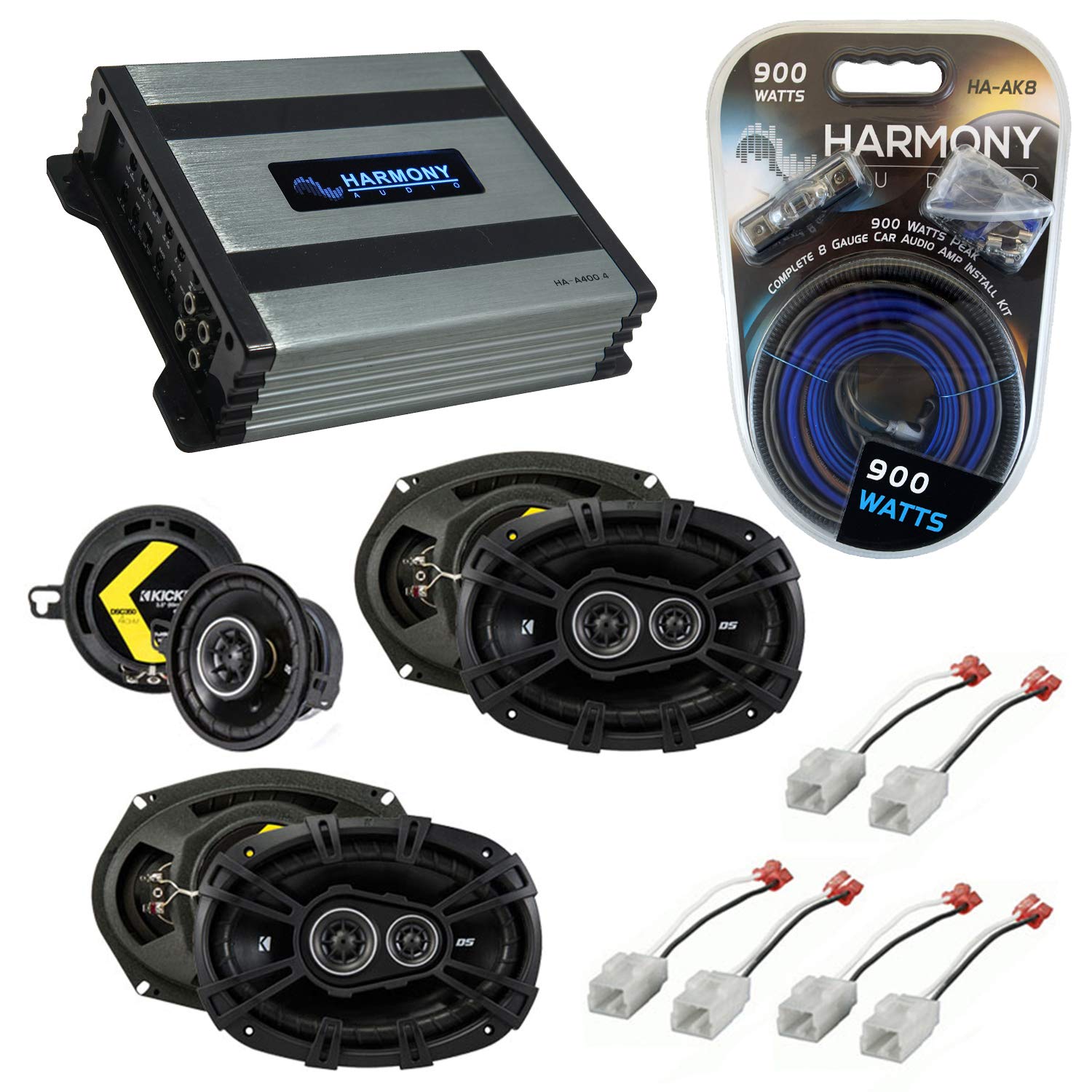 Compatible with Chrysler 300 2005-2007 Speaker Replacement Kicker Bundle (2) DSC693 DSC35 & Harmony HA-A400.4 Amp