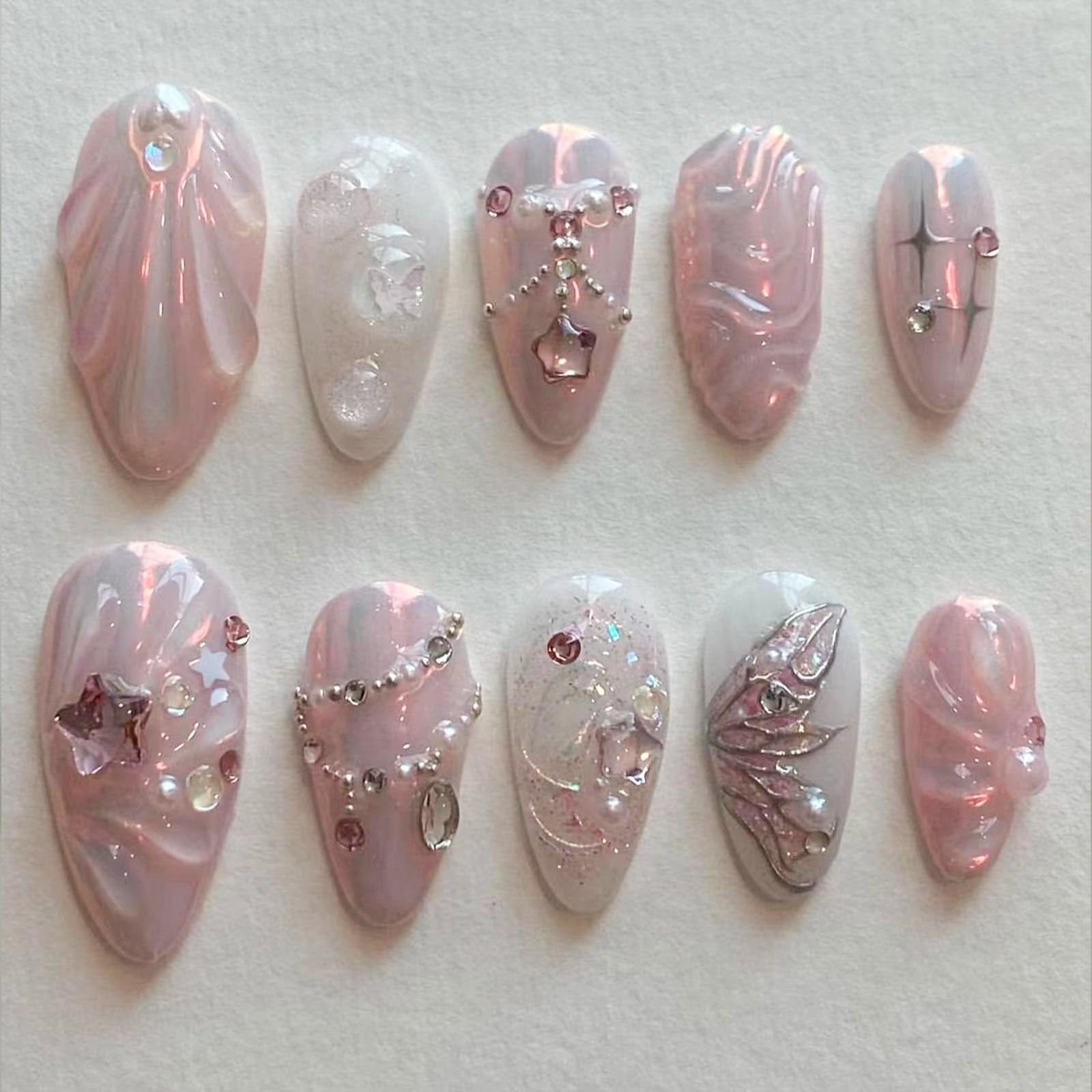 Handmade Press on Nails Pink Fake Nails ... |