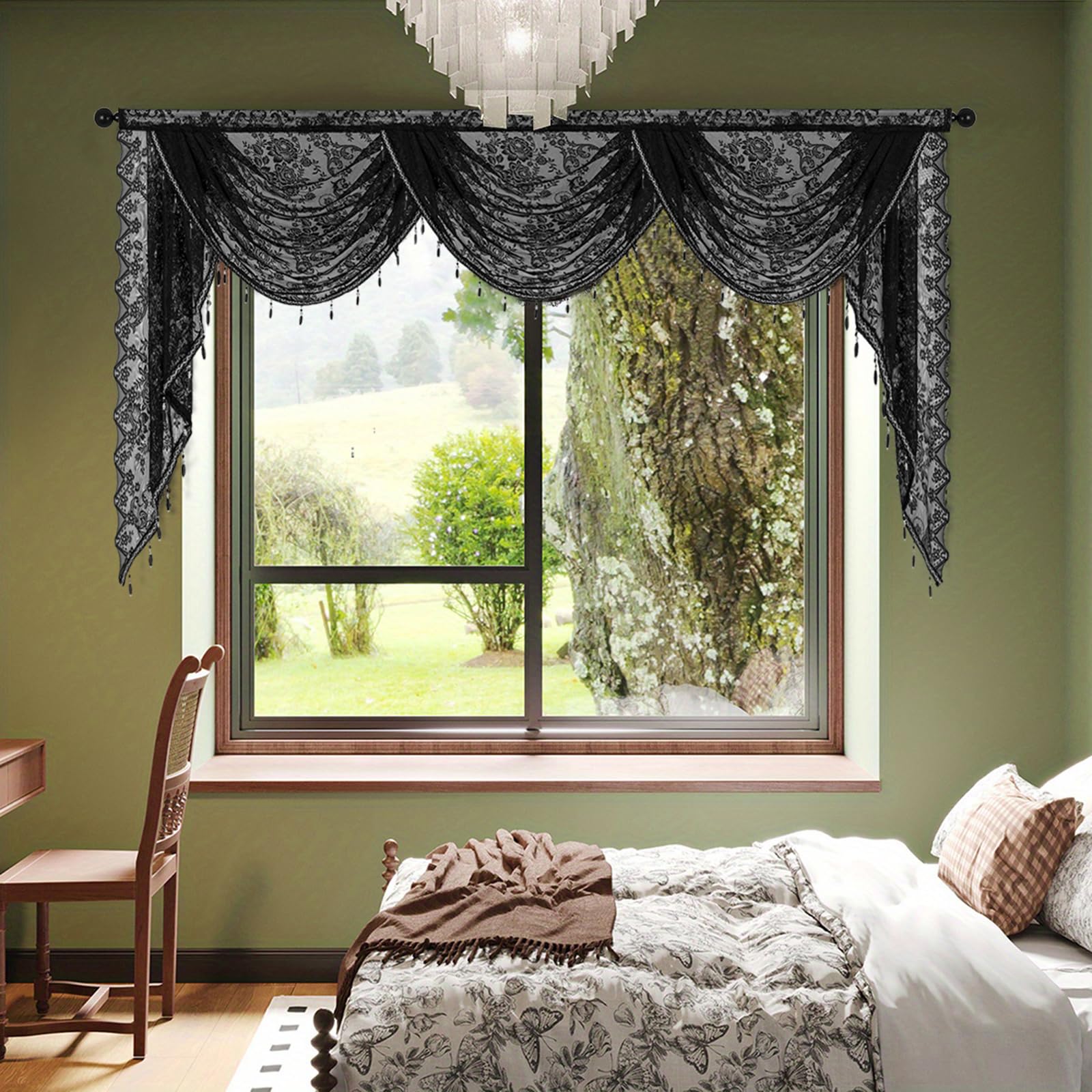 Huierxun Black Sheer Lace Waterfall Wind... |