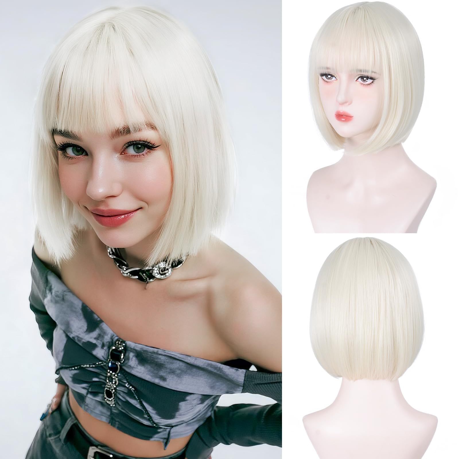 Aida ble Platinum Blonde Bob Wigs - 12in... |