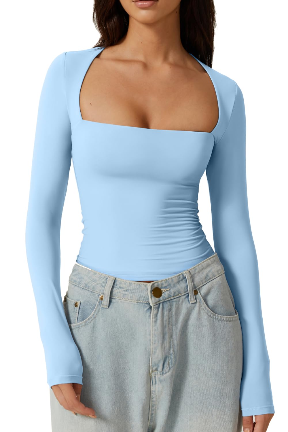 QINSEN Women's Sexy Square Neck Shirt Lo... |