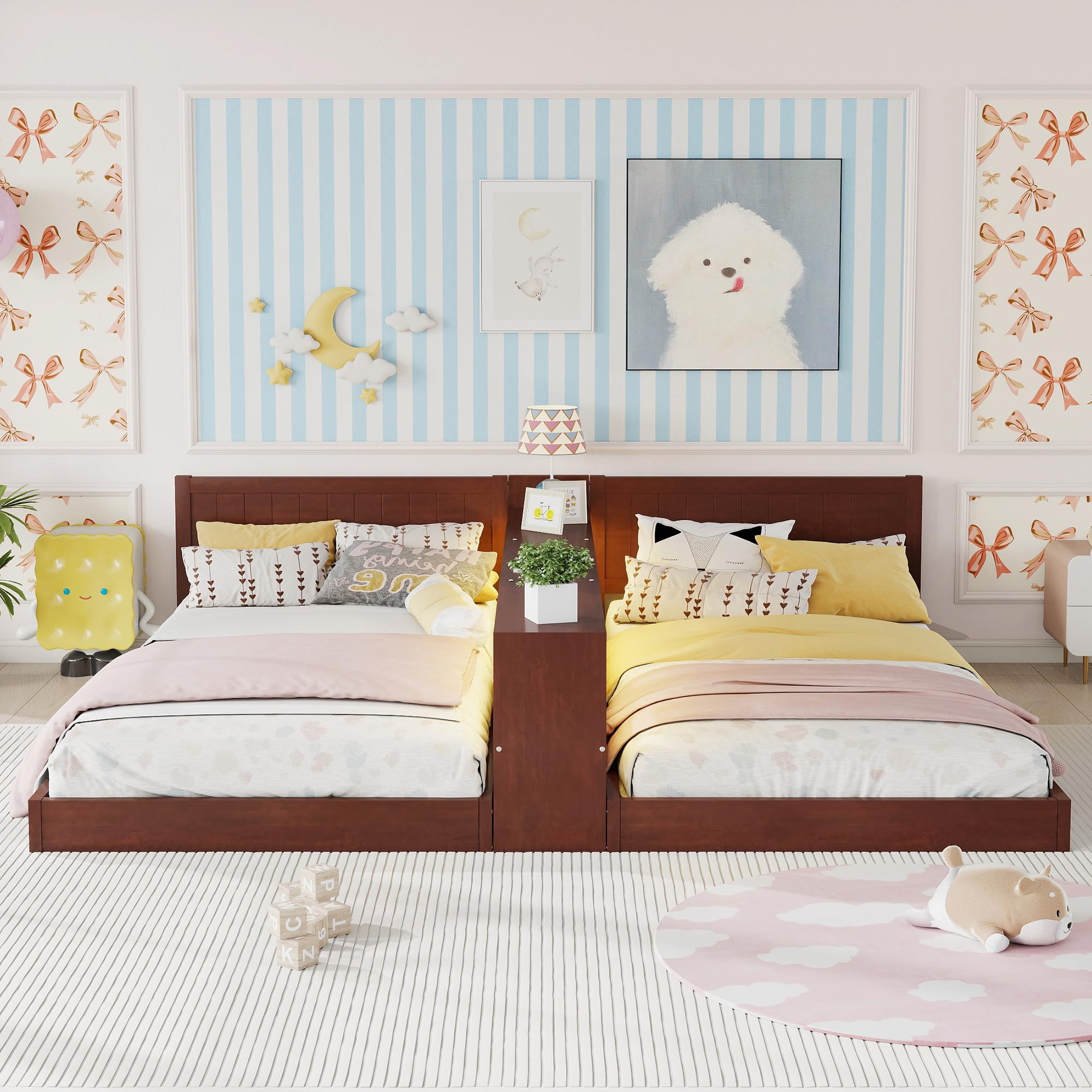 KEIKI Double Twin Size Wooden Floor Bed ... |