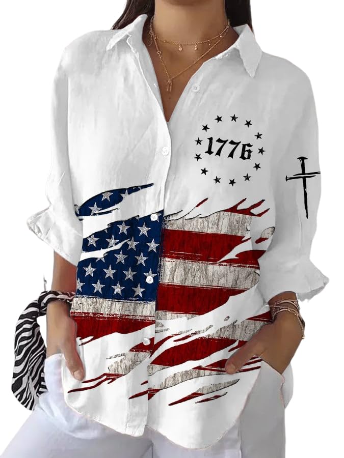 Womens Vintage Flag Cross Shirt Patrioti... |
