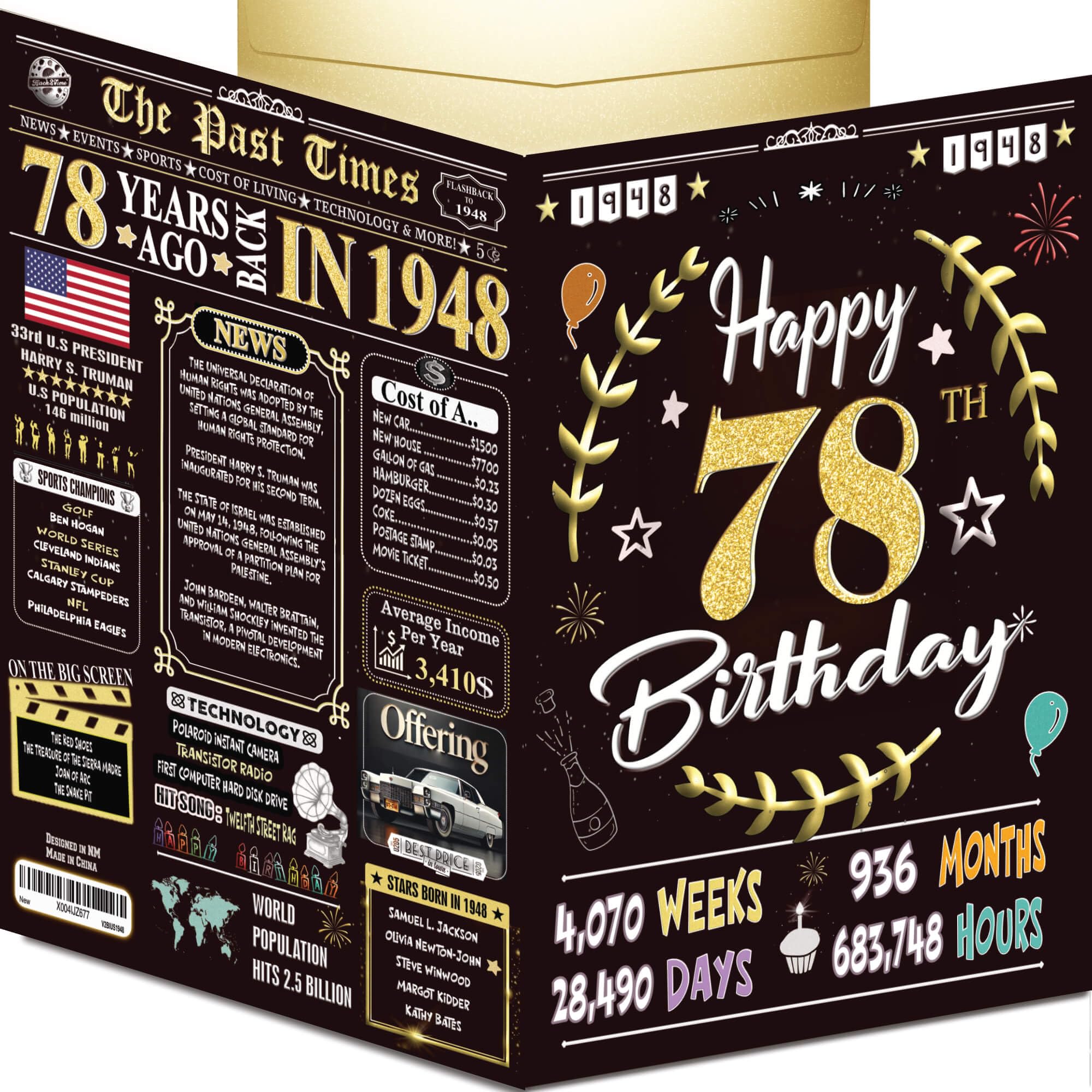 78th Birthday Card for Women Men - Back ... |