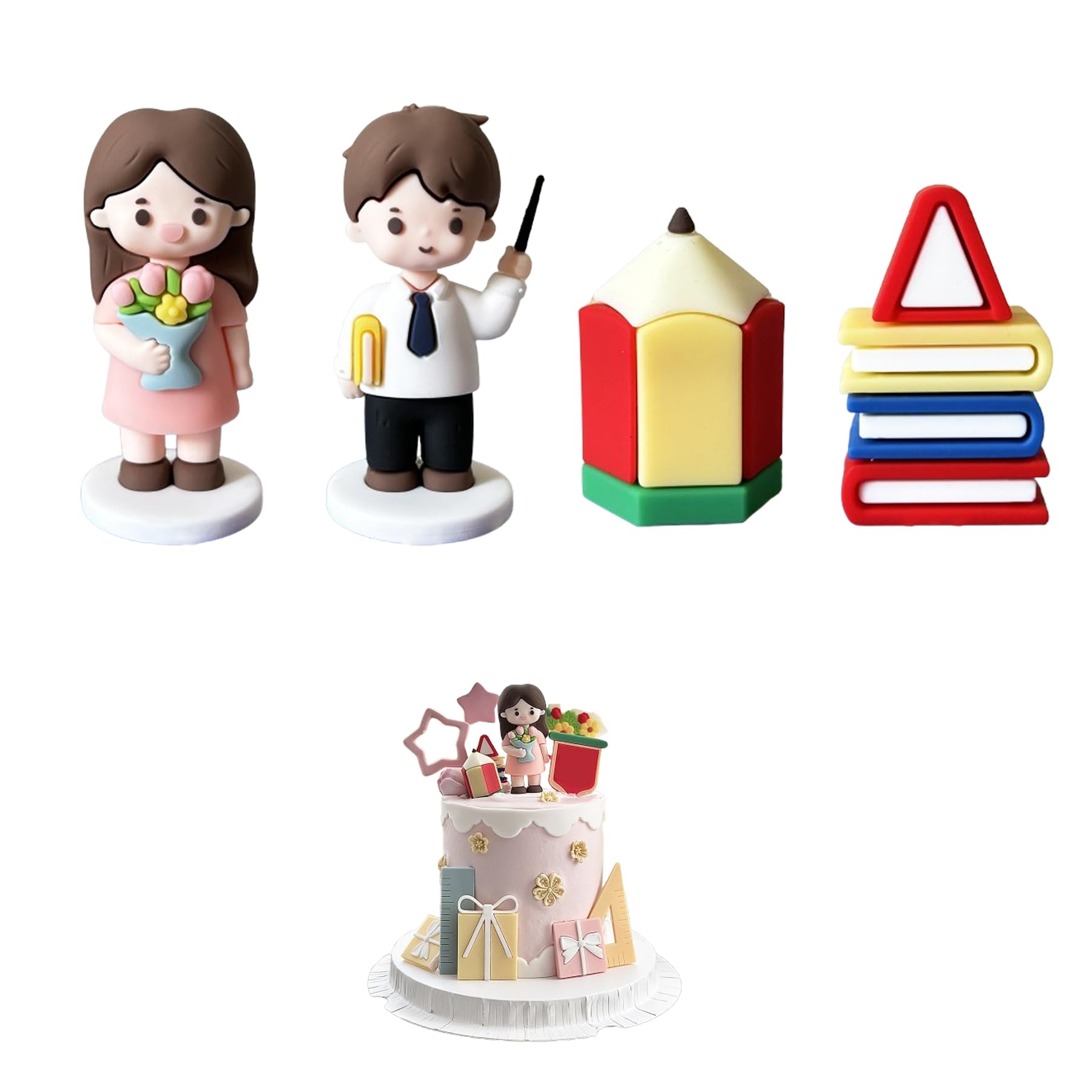 4PCS Teacher statue Cake Topper,Congrats... |