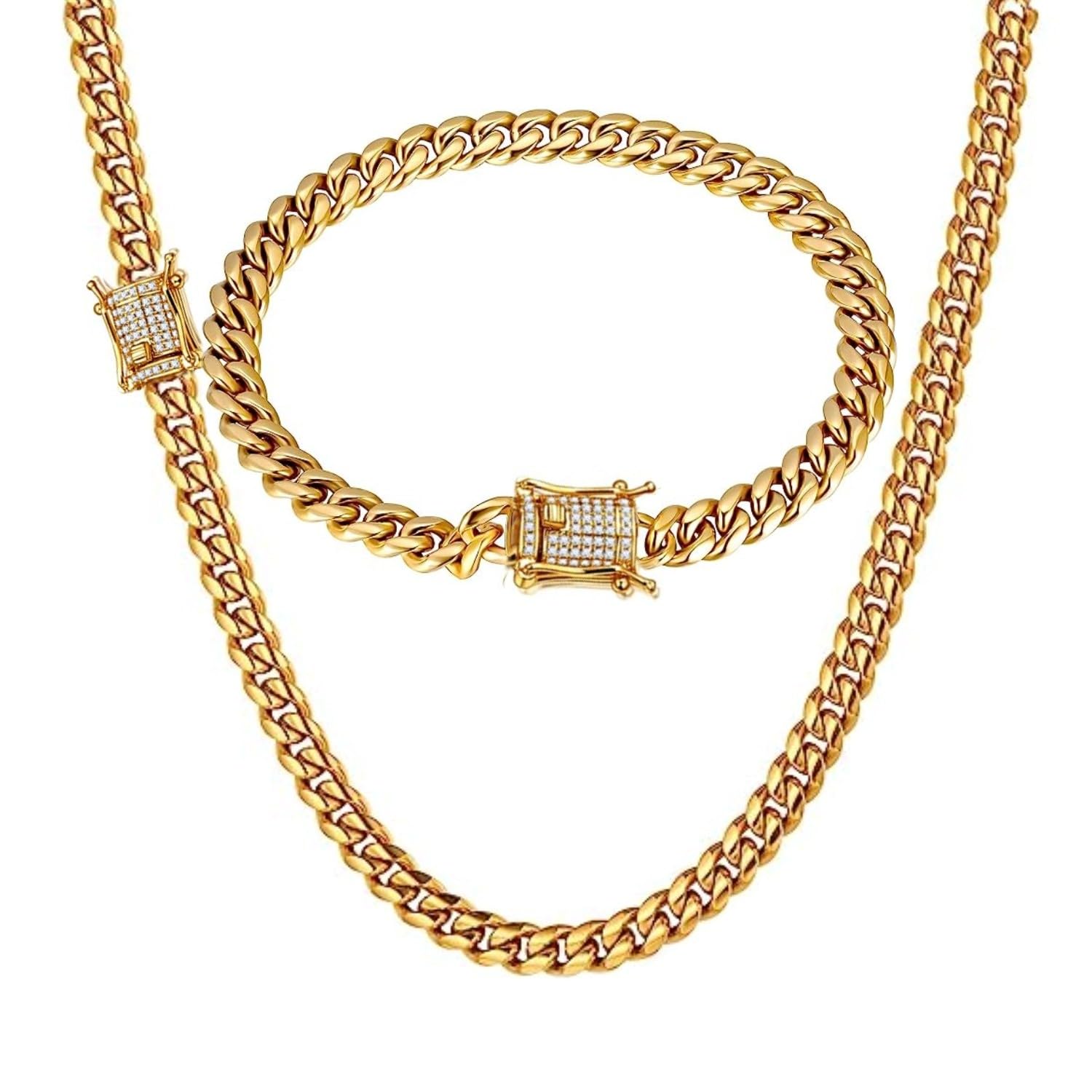 putouzip Miami Cuban Link Chain Set For ... |