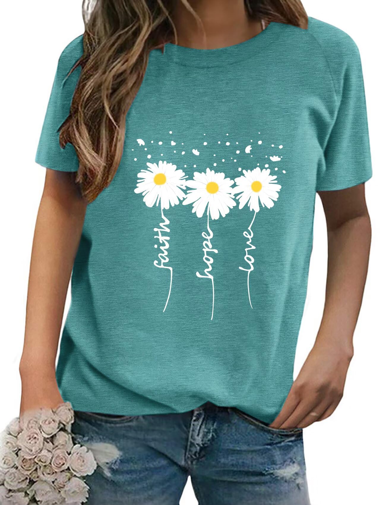EADINVE Women Crewneck Daisy Print Short... |