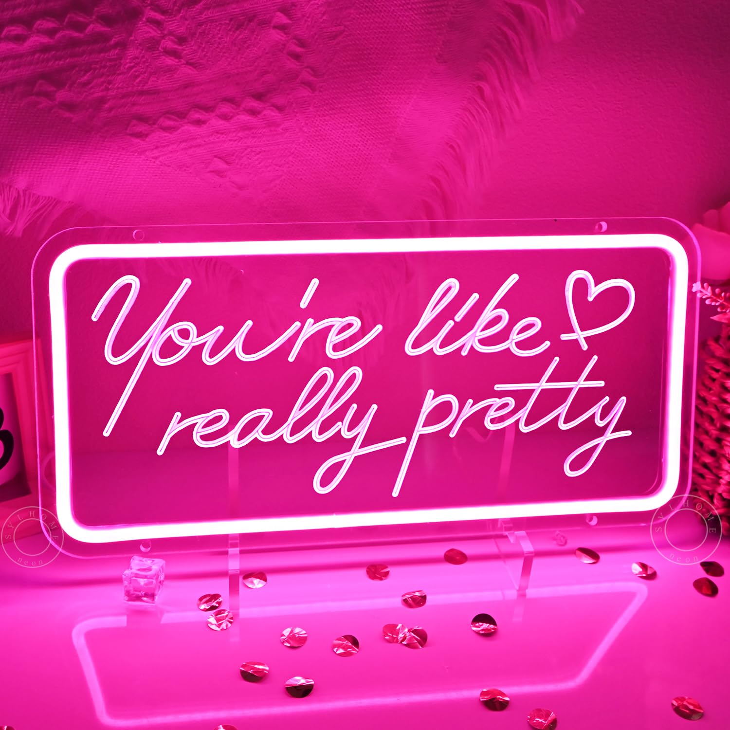 Size : Size of neon light sign is 15.8"X7.5". Color is pink. Cord length is 6.6ft. Use:You can hang it on the wall or place it on the table. The acrylic backboard has pre-drilled holes for easy hanging (screws inside). USB Powered: 5V working voltage powered by USB.The neon signs are charged by plug, phone charger, power bank or computer, you can use any plug with USB port (no power adapter). Specific: Compared with fragile glass neon sign, the LED neon light is made of soft neon strip and anti-falling plastic and there is no worry of glass breakage.The neon sign won't get hot in use. It's a good surprise for your family or someone you love. Brighten Your Room: Decor the wall or windows of your bedroom, living room, kitchen, kid's room, shop, office, pub, bar. Make your home bright and full of fun. LED neon light signs you're like really pretty decoration for kids’ Room bedroom living room game room window wall sign hanging wedding party birthday Children's Day Valentine’s Day proposal Christamas