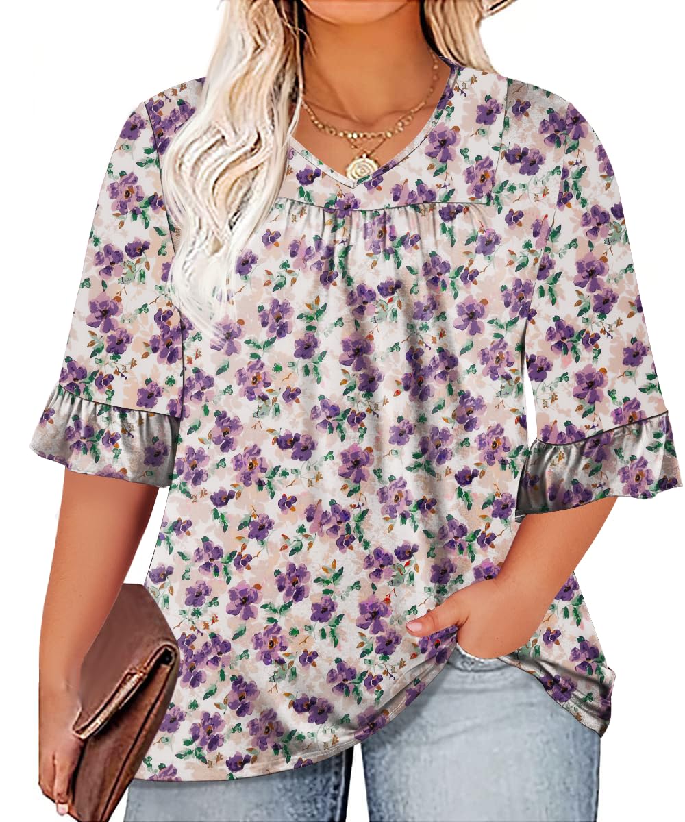 Micoson Womens Plus Size Tops 3/4 Ruffle... |