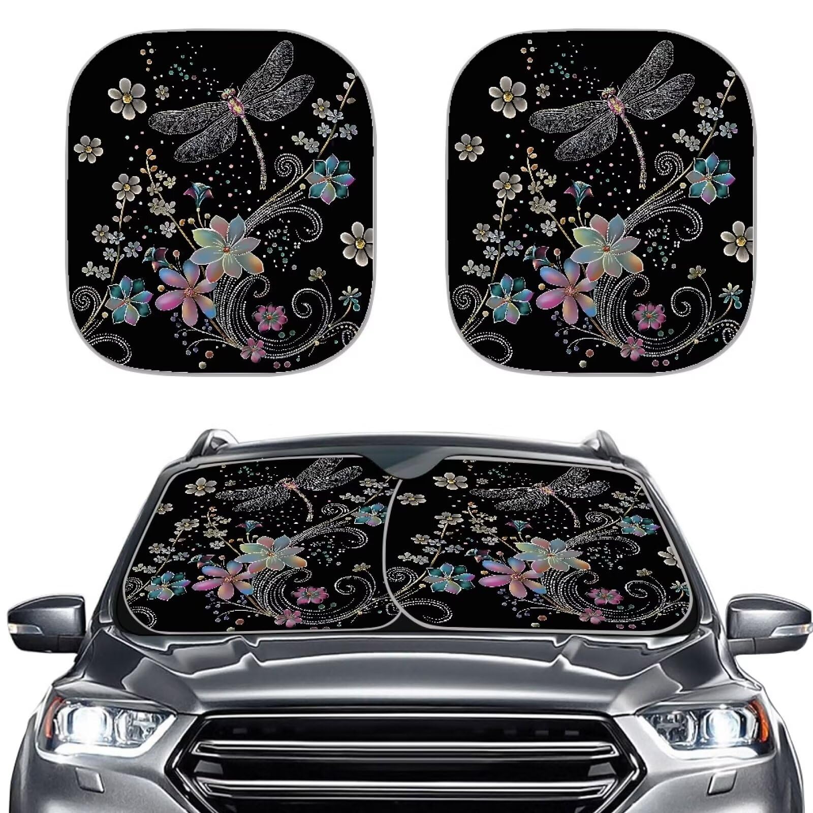 Renewold Dragonfly Flower Print Car Wind... |