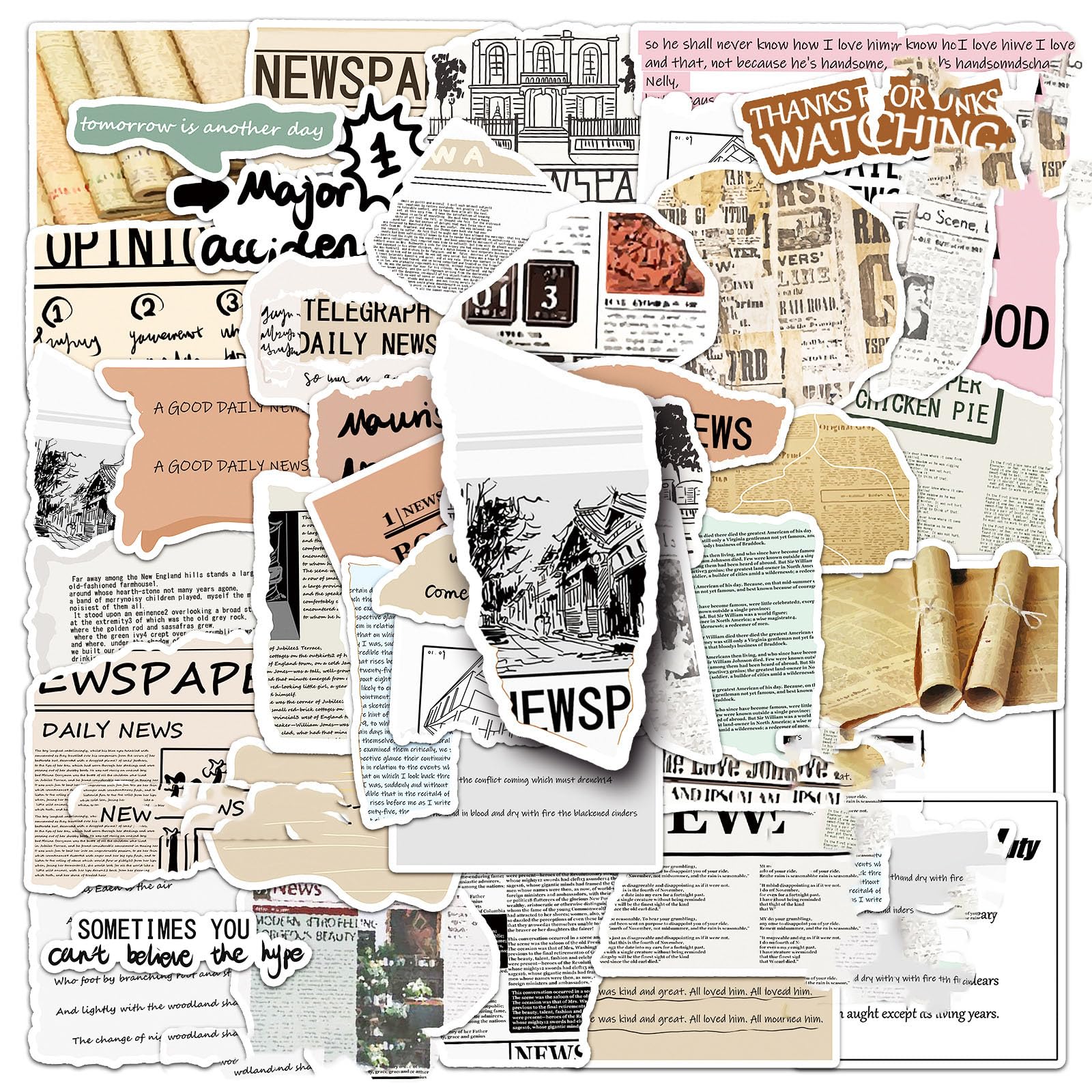 50 Pieces Newspaper Stickers Waterproof ... |