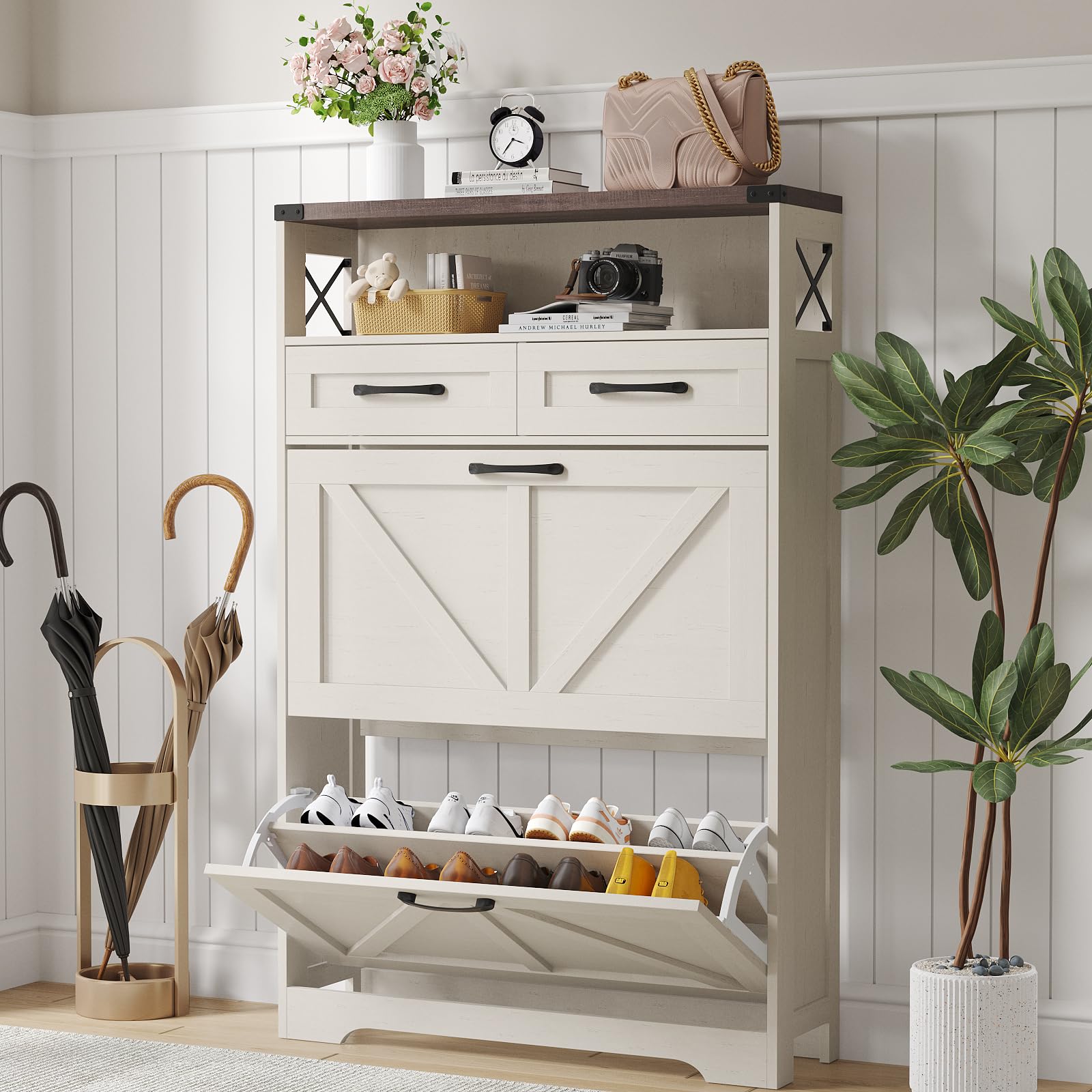 Maupvit Shoe Cabinet with 2 Flip Drawers... |