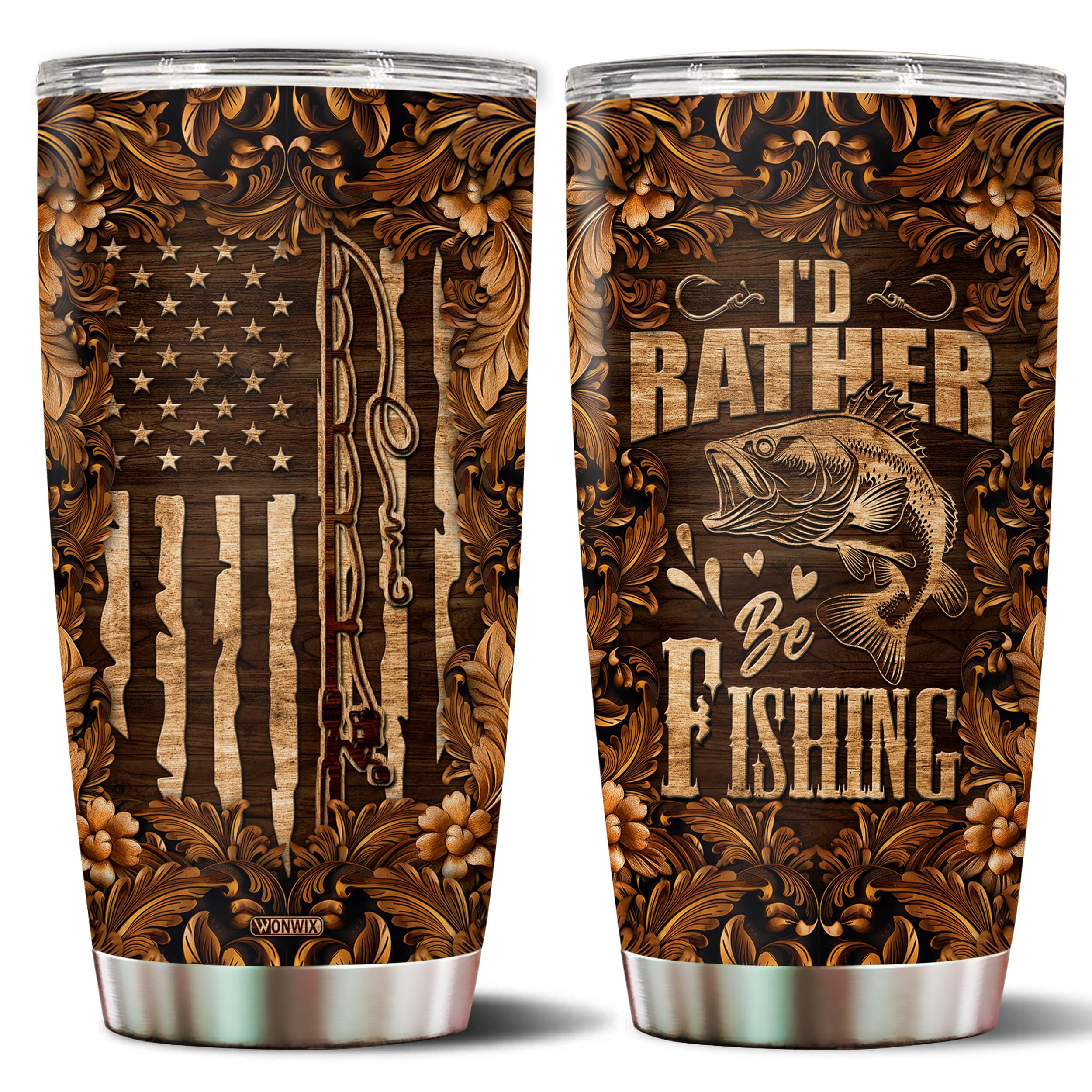 WONWIX Fishing Tumbler for Men Wood Draw... |