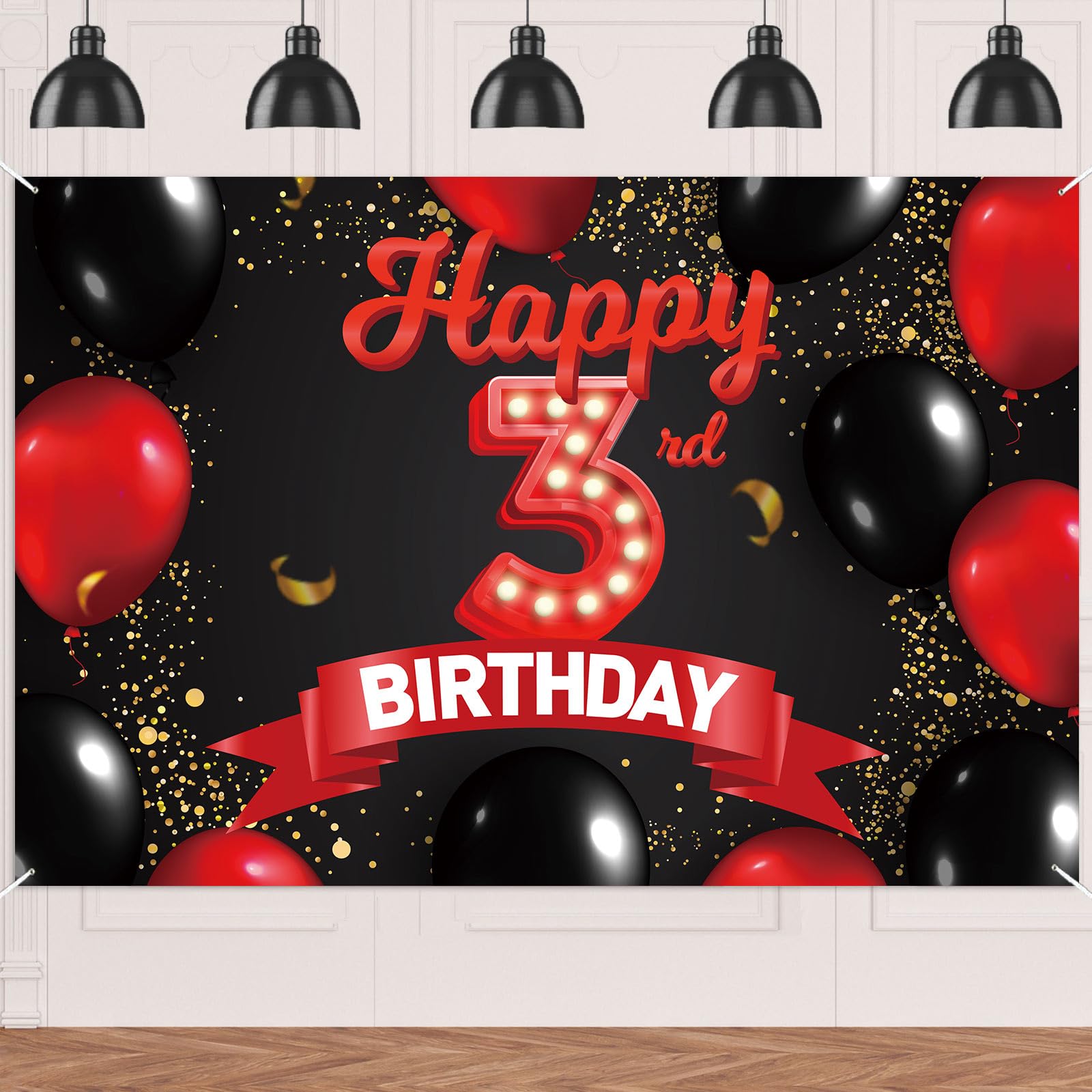 Happy 3rd Birthday Red and Black Banner ... |
