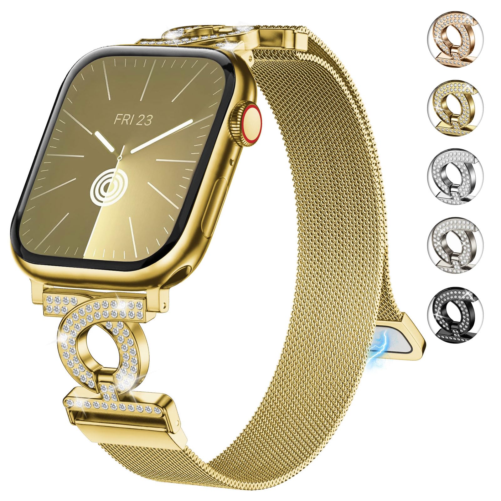 Upgrade your Apple Watch with a touch of sparkle and elegance. This Wutwuk stainless steel mesh band features a shimmering rhinestone-accented clasp and single ring embellishment, bringing a glamorous, dressy look to your everyday style. Designed specifically for women, it offers both beauty and comfort in one lightweight, breathable bracelet strap.