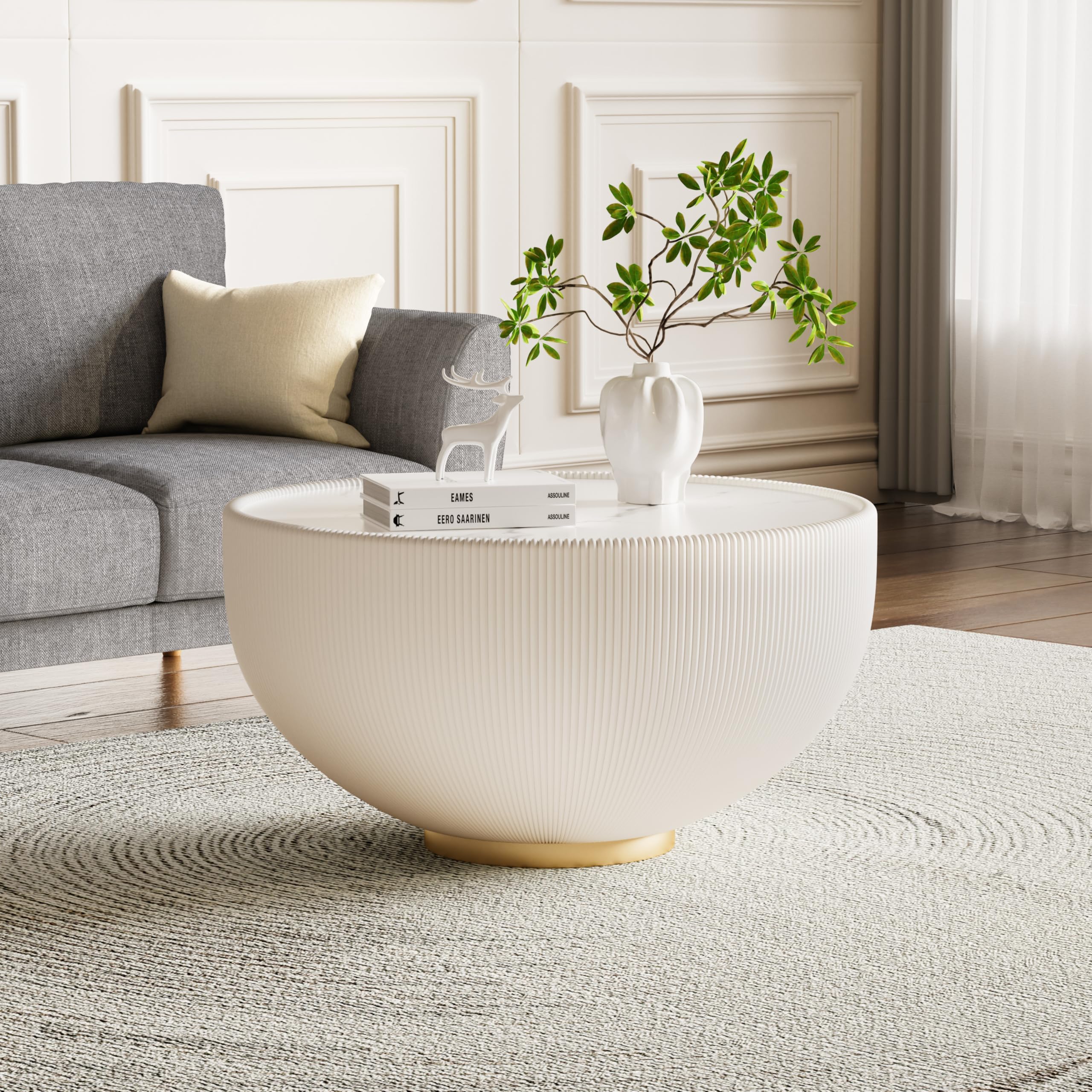 Mcltopz 27.55" White Round Coffee Table,... |