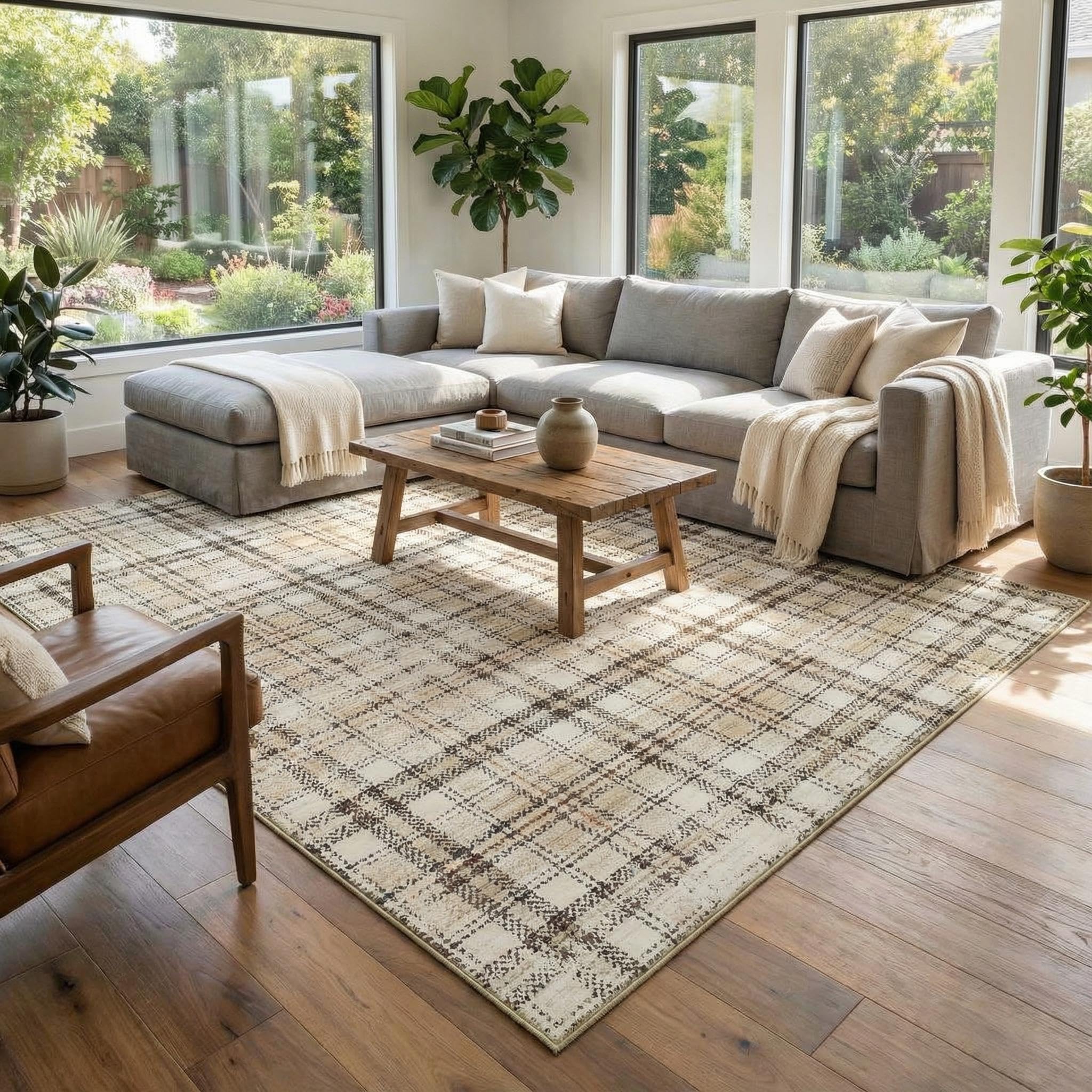 MilleLoom Modern Plaid Area Rug 5x7 Wash... |