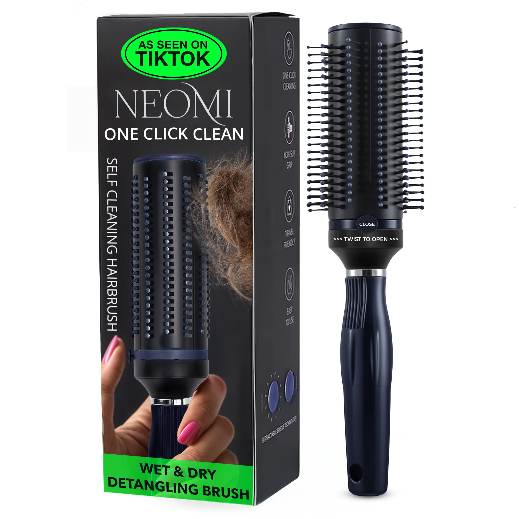 SELF CLEANING HAIRBRUSH - This self cleaning hair brush detangler effortlessly removes trapped hair and debris, leaving your bounce curl brush for women ready for the next use. PLEASE CHECK THE VIDEO TO UNDERSTAND HOW TO OPEN AND HOW TO CLOSE BRUSH. RETRACTABLE BRISTLES - The bristles of this hair comb for women is designed to be gentle on your scalp and hair, reducing breakage & promoting healthy hair growth. This portable comb is ideal for both home use and travel, fitting easily into any bag. VERSATILE FOR ALL HAIR TYPES - Whether you have curly, straight, thick, or fine hair, this roller hair brush for men and women is perfect for everyone. Made from high-quality plastic, this styling detangler comb is built to last and withstand daily use. ENHANCE BRUSHING EXPERIENCE FOR ELDER USERS - No need to constantly bend down and pick up stray hairs as hair remains wrapped around the hair combs for women without falling. It can be used with a hair dryer for efficient styling & drying. 6 MONTH WARRANTY - Buy hairbrush for women with a GIFTS: Perfect for anniversaries, engagements, or special occasions. . Enjoy exceptional customer support when purchasing rotating comb for women, brush for curly hair brush for curly hair, detangling brush, & curling brush. This innovative curly hair brush for men features ultra-soft bristles that gently detangle and style your hair. The unique easy-cleaning feature of the hair brushes for women effortlessly removes trapped hair and debris. With retractable technology, the bristles of this detangler brush hair comb can be smoothly opened and securely closed. This portable comb hairbrush is ideal for home use and travel, fitting easily into any bag.