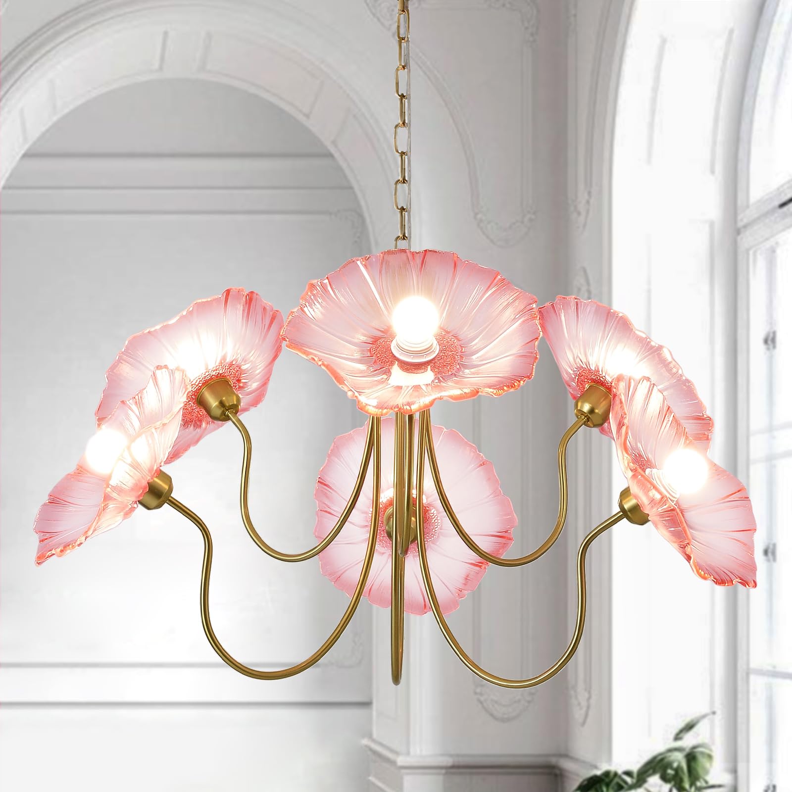APLampara 33.4" Modern Floral Glass Chan... |