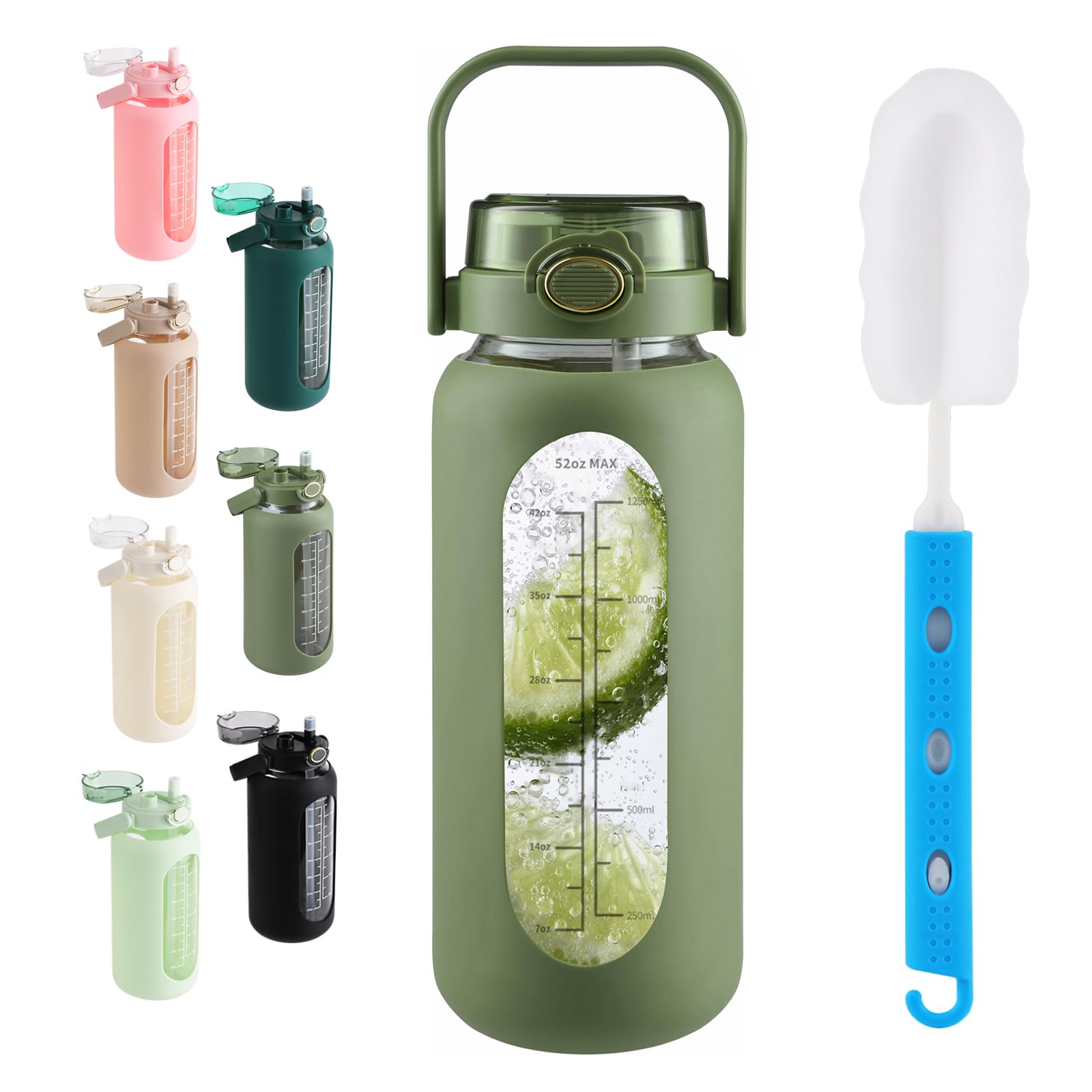 SIEROZUR 52oz Glass Water Bottle with 2-... |