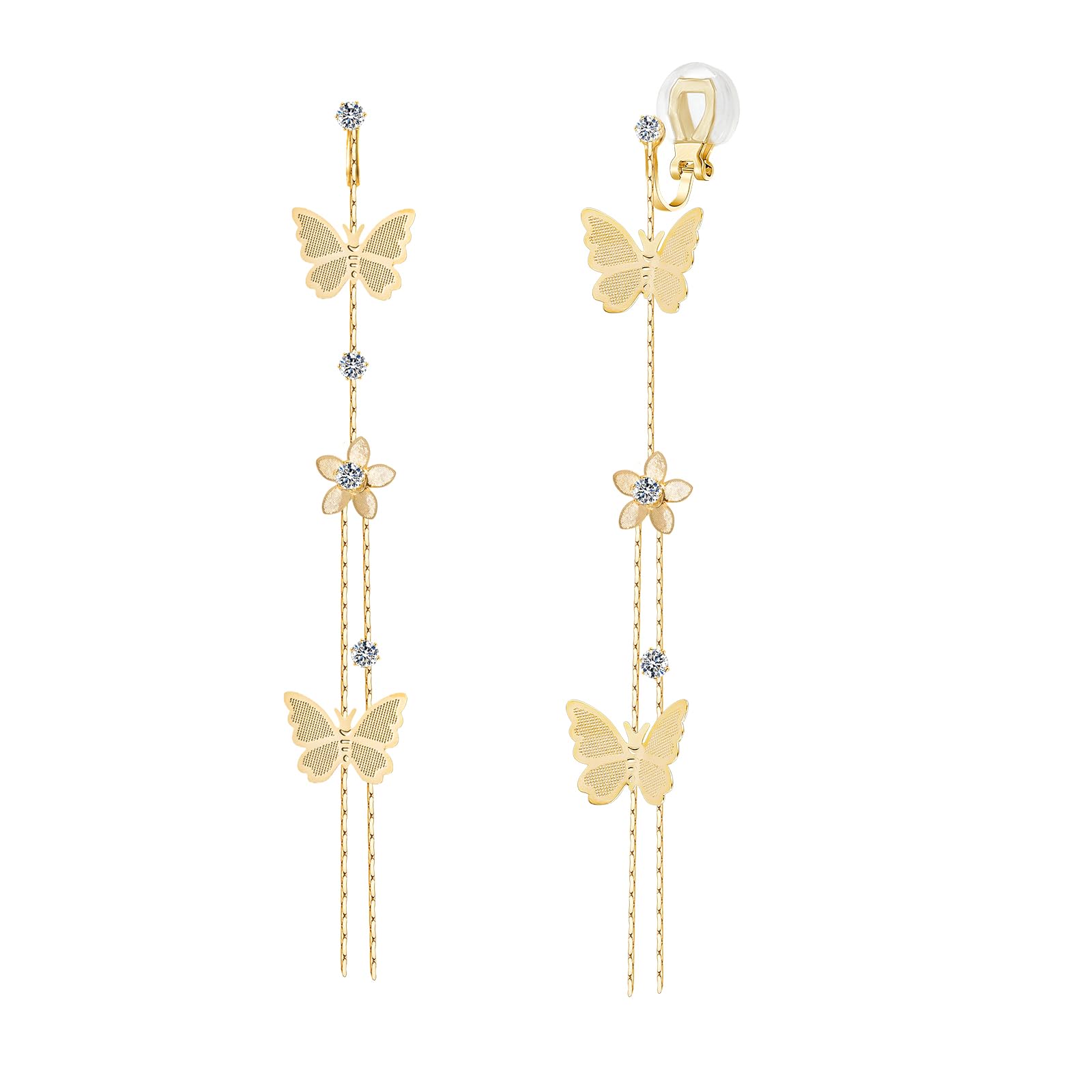 YOQUCOL Butterfly Long Drop Clip On Earr... |