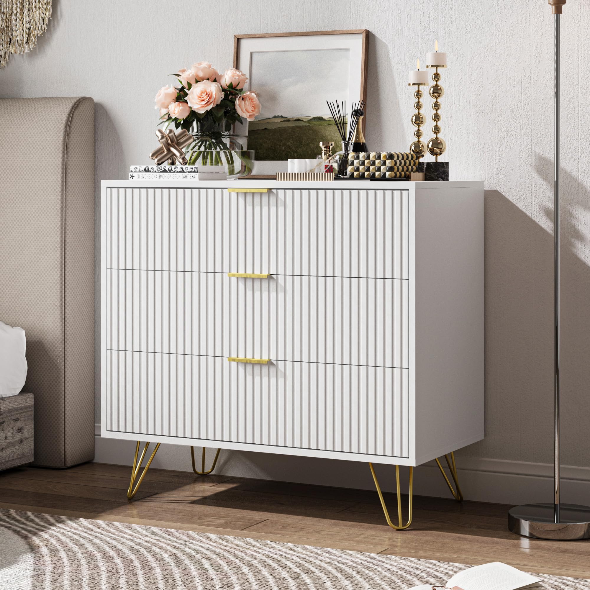 MAISONARIA White 3 Drawer Dresser for Be... |