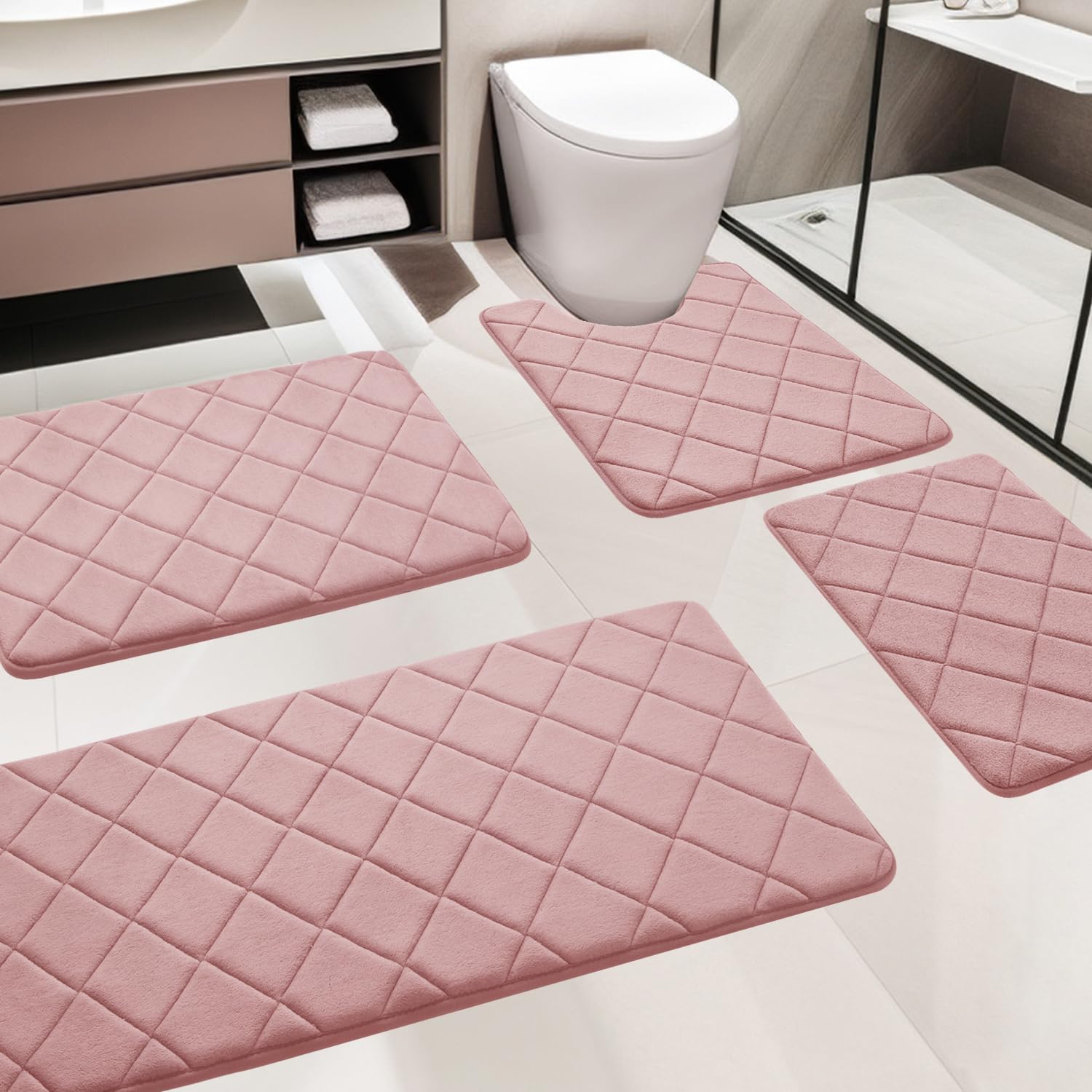 YIHOUSE Bathroom Rug Set, 4 Non Slip Mem... |
