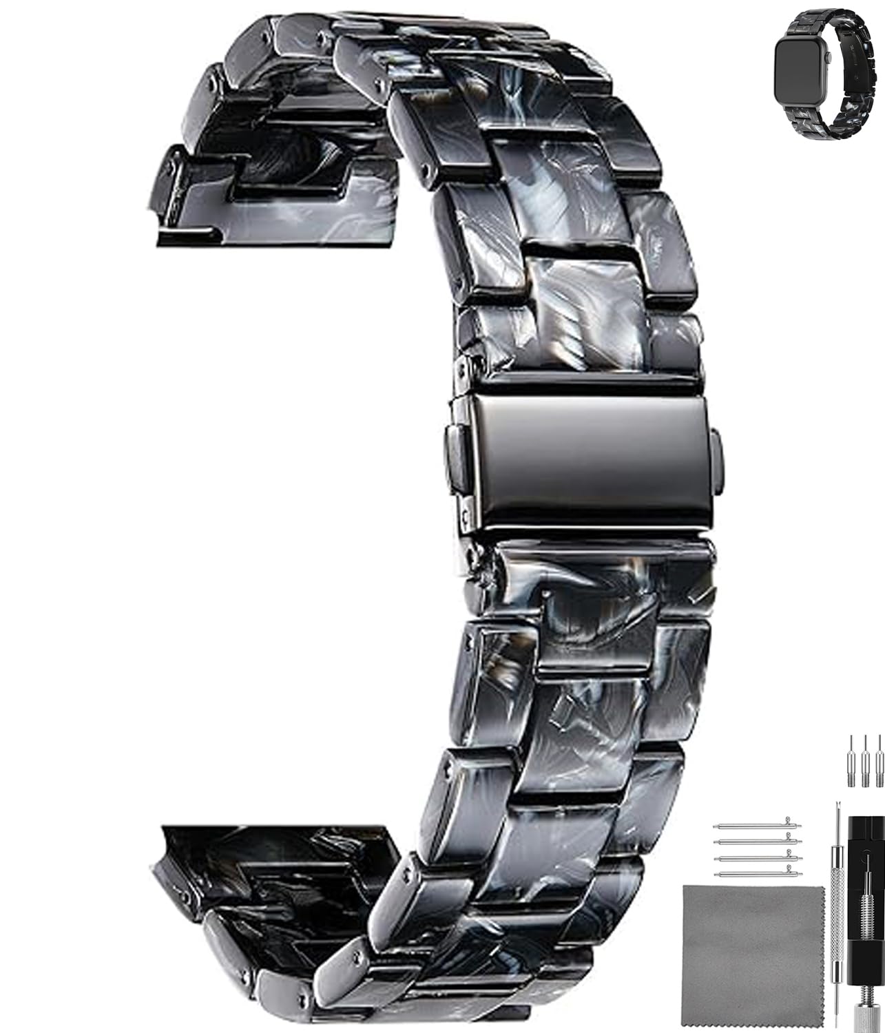 1. Stylish and Durability: Only 30g, the light and stylish resin material complements the sleek look of your watches, while the stainless steel buckle adds a secure and polished finish, making it a perfect accessory for any occasion. Also ticfrog watchband has held up exceptionally well to daily wear and tear, maintaining its luster and quality. 2. Comfortable to Wear:Comfort is crucial for a watch band, the smooth and lightweight resin doesn't irritate your skin, even during prolonged wear. TICFROG 20mm resin watch band Suitable for 5.5” -7.9”wrists, it will be your new go to, it isn't only comfortable but aslo sturdy. 3. Adjustability:The package contains 2pcs quick release spring bars, a links removal tool and 1pc 18cm*18cm cleaning cloth. The band is easy to attach and remove, the adjustable links ensure a perfect fit for various wrist sizes, making it convenient for switching between different styles. 4. Versatility:What sets TICFROG watch straps apart is its versatility. Whether you‘re dressing up for a formal event or keeping it casual on a weekend outing, the light resin watch straps effortlessly blends with your style. It's a subtle statement piece that enhances the overall aesthetic of your wristwatch. For those who appreciate a trendy and casual look for their Watches, this light resin watch band is a solid choice. 5. TICFROG Service - Thank you so much for choosing TICFROG 20mm resin watch band. We assure you the best quality by offering lifetime warranty. Any problems about our watch straps, please feel free to contact us, you will get a very quick response and satisfactory after-sales service cause customer’s happy shopping experience is the most important for us.