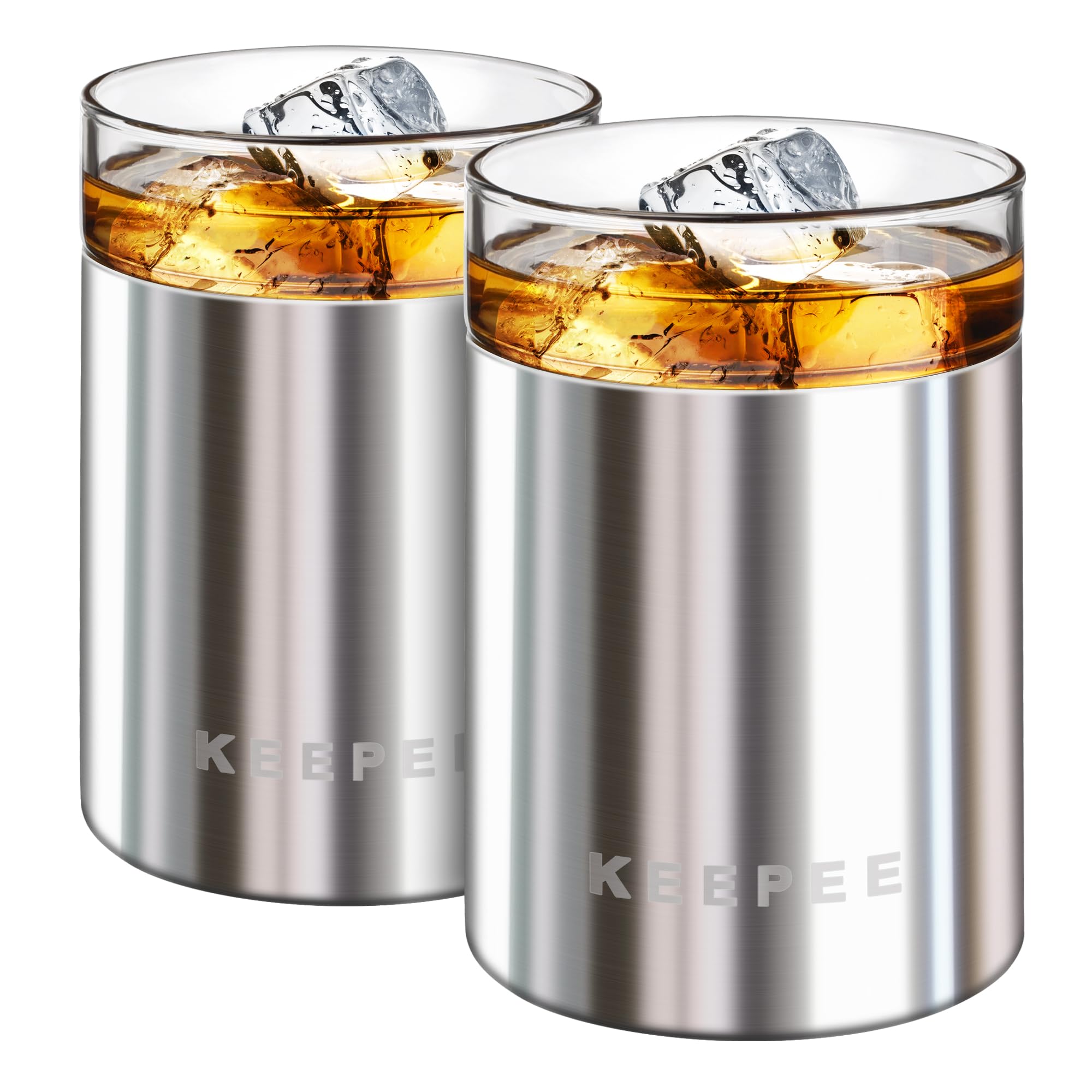 KEEPEE Whiskey Glasses Set of 2, Insulat... |
