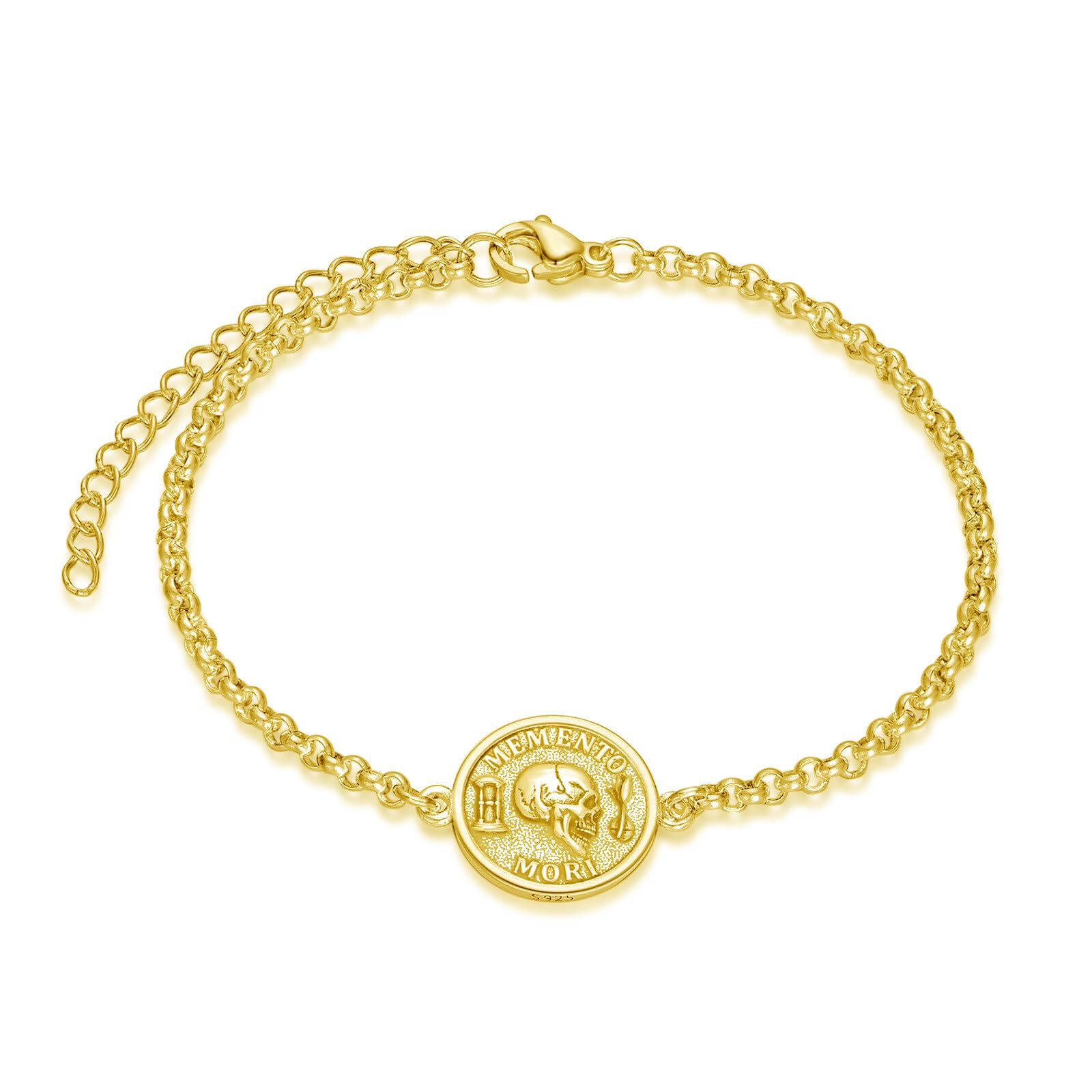 【Design Inspiration】❁❁ MEMENTO MORI means "Remember you will die." Let this side of the pendant remind you to live every day to its fullest potential, for we are not promised tomorrow - just as the phrase conveys, death is inevitable. This is not a morbid message, but instead a positive reminder to make the most of every moment you are given, to recognize the opportunity in every day we wake up and keep breathing. 【Safe Material】❁❁ MEMENTO MORI bracelet: 925 Sterling Silver, a right thickness, is strong and not easy to break, cool and comfortable, 100% nickel-free, lead-free, cadmium-free. Not contain any allergic element. 【Package Including】❁❁ MEMENTO MORI bracelet (15.9mm/ 0.62inch), Weight: 3.46g, 1x polishing cloth, 1x exquisite gift box. Our bracelet comes in a gift box and with a polishing cloth. Easy to Wear and Take Off. 【Perfect Gift】❁❁ MEMENTO MORI bracelet is well packaged by PELOVNY brand gift box. Due to its affecting meaning, you can freely take it as an ideal gifts for women, men, brother, boyfriend, best friends. Suitable for birthday, Christmas, Graduation, Thanksgiving, Valentine’s Day or any special occasions. 【Quality Customer Service】❁❁ You will get a 100% satisfaction on Problem Solving. If you have any questions about the our MEMENTO MORI bracelet or after-sales, please feel free to contact customer service at any time, we will reply with a satisfactory solution within 24 hours.