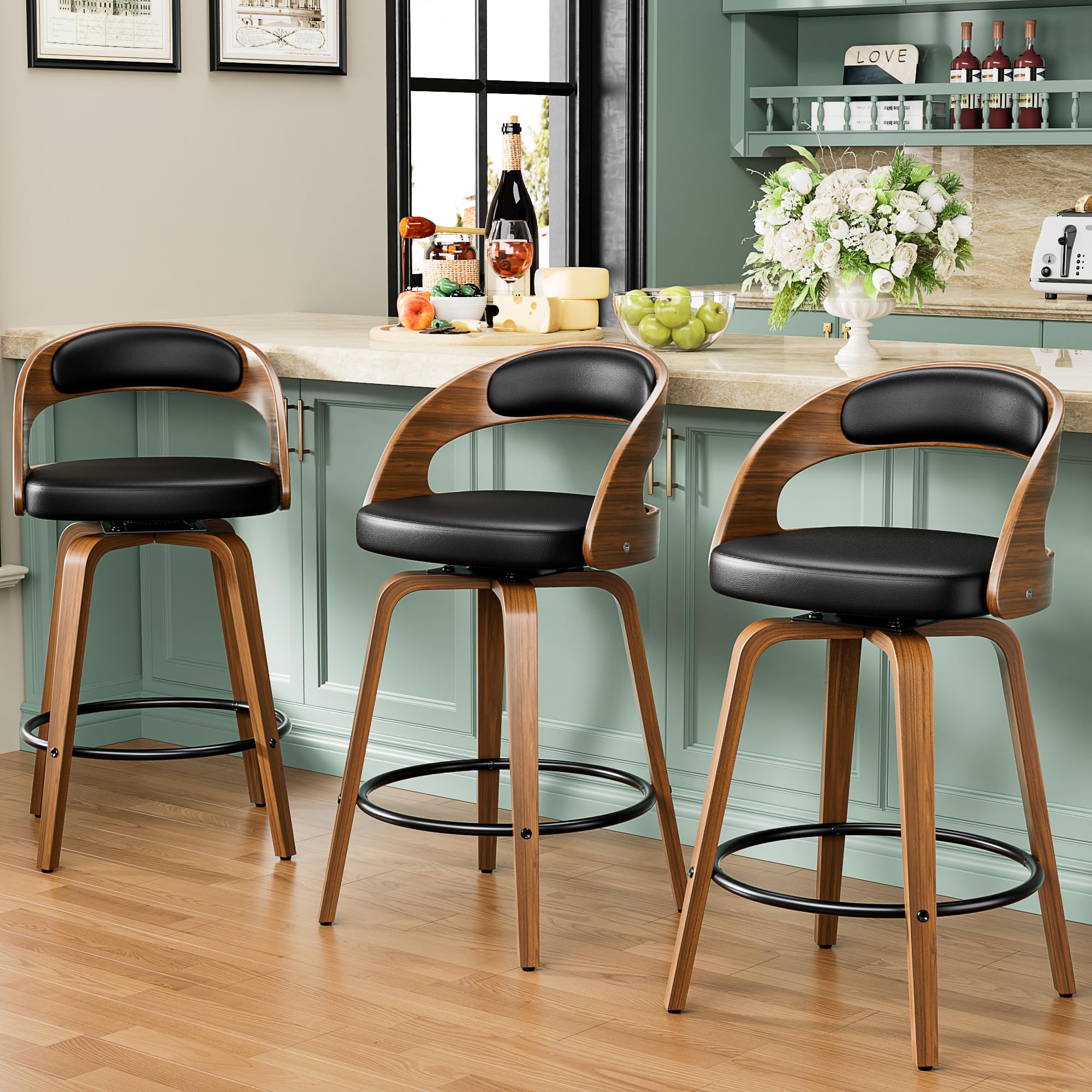 YaFiti Bar Stools Set of 3, 26" Counter ... |