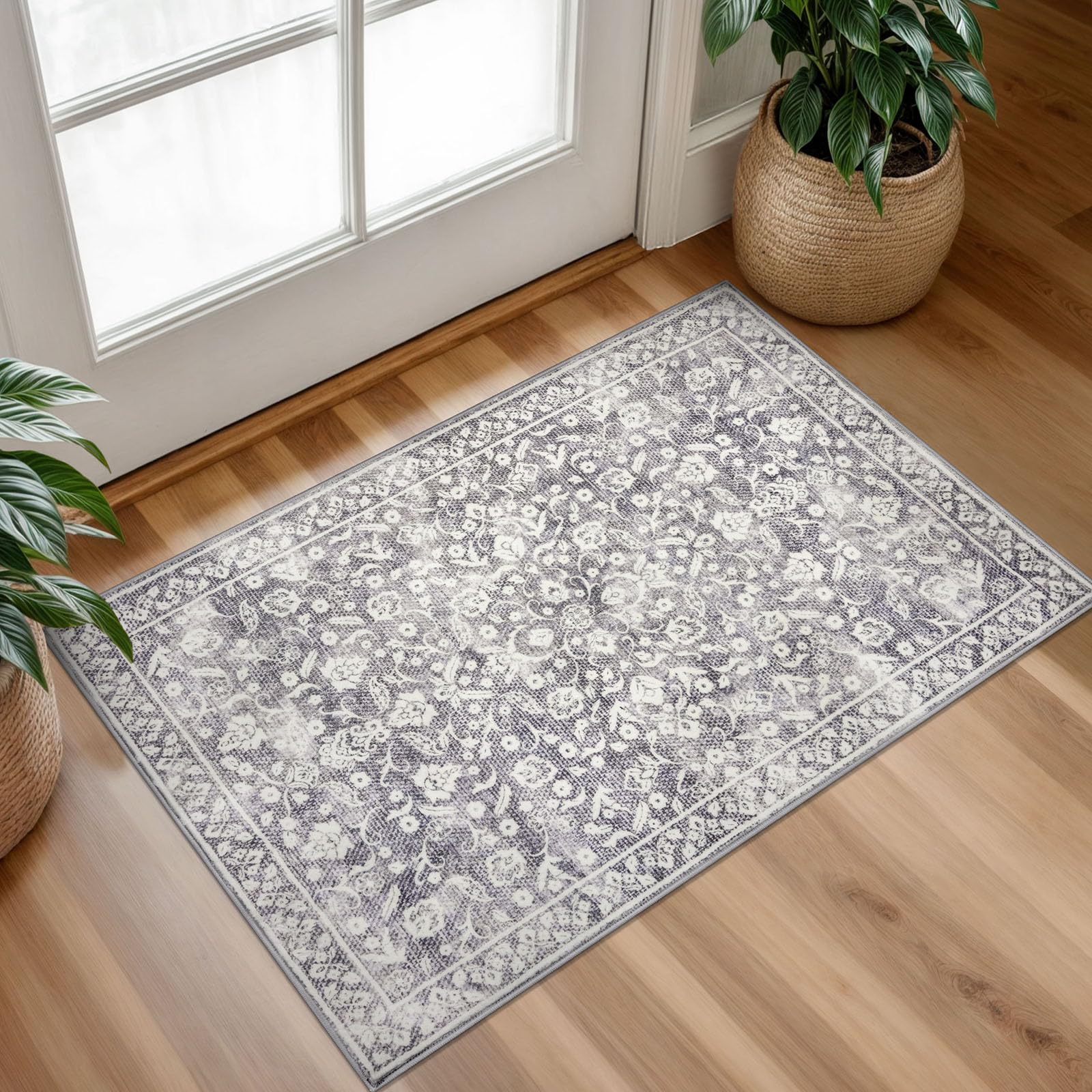 SILOLOOM Vintage Entryway Rug, Gray Ivor... |