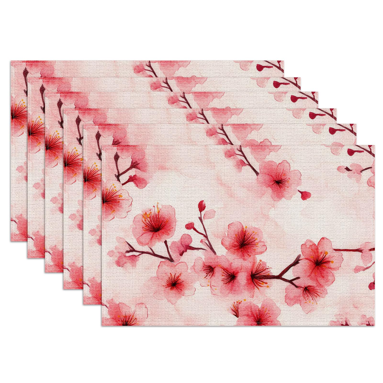 Pink Cherry Blossom Placemats Set of 6,1... |