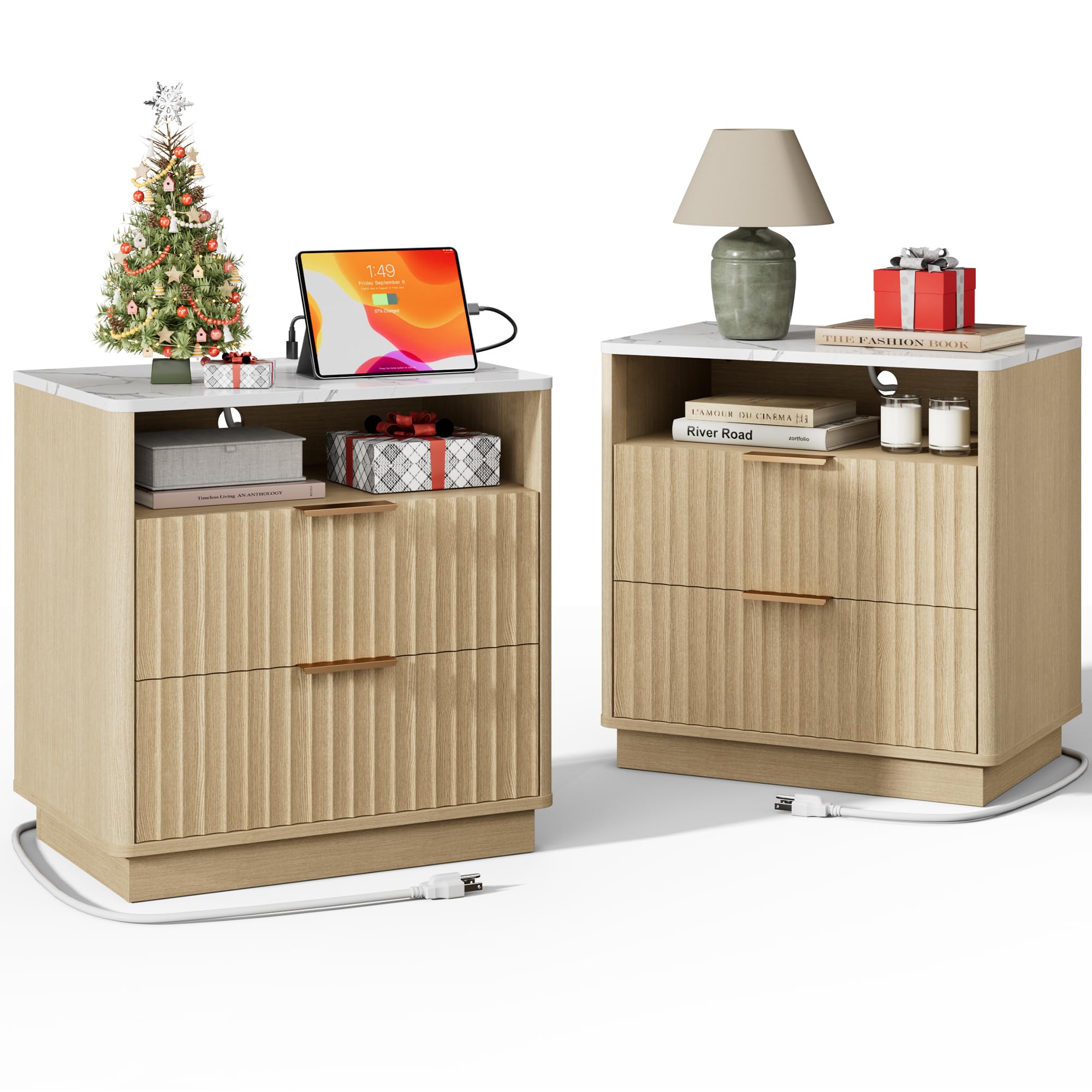 FavourLife Fluted Nightstand, Night Stan... |