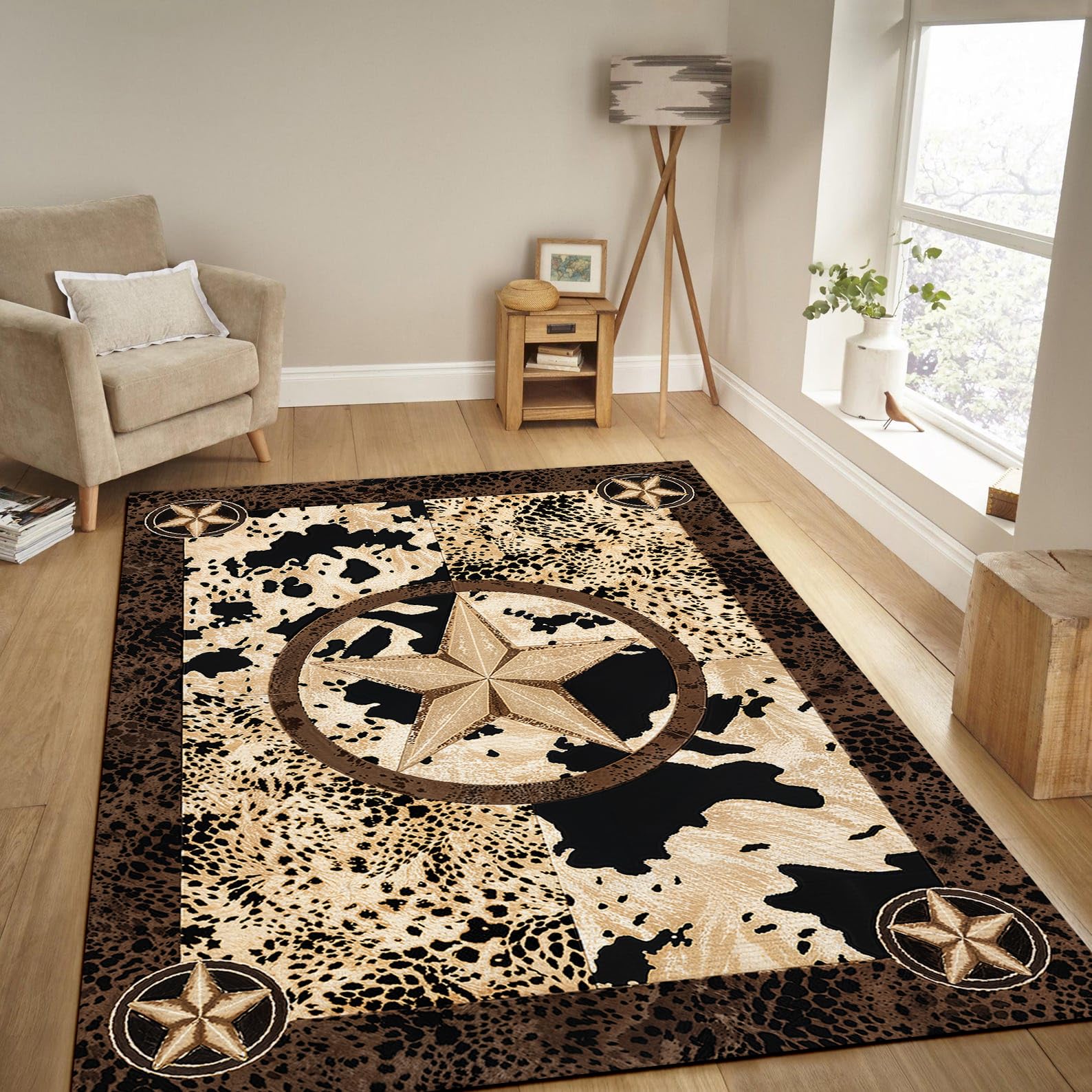 Western Rugs for Living Room, Classic Style Decorative Rugs, Full Sizes 3x5, 5x6, 5x7, 6x9 ft, Washable Area Rugs,