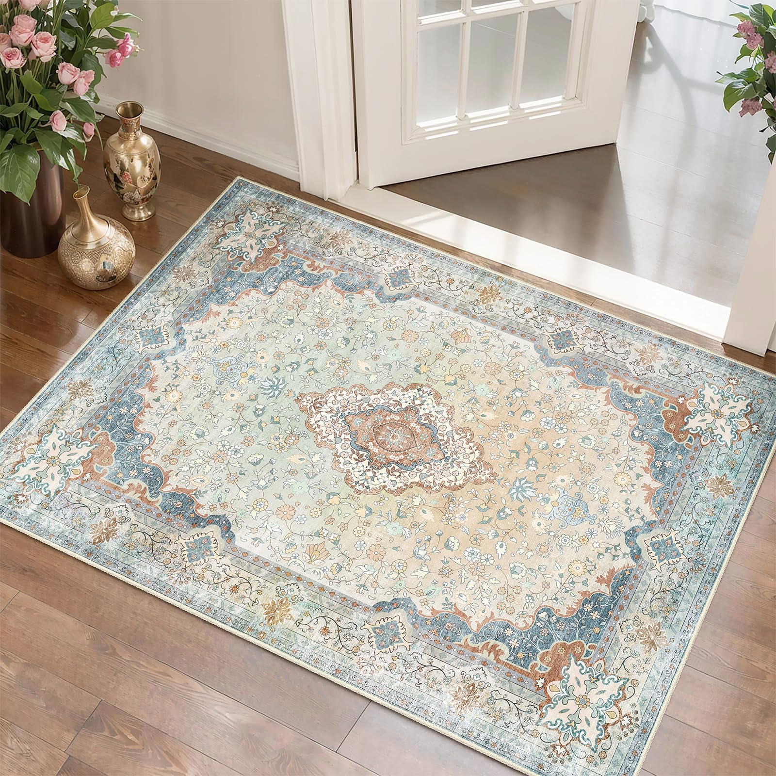 Brakki 2x3 Blue Beige Floral Rugs for En... |